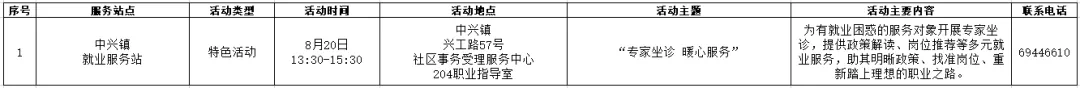 活动简介:为高校毕业生、长期失业青年及其他有求职需求的人员提供岗位信息、求职登记、政策咨询等就业服务。