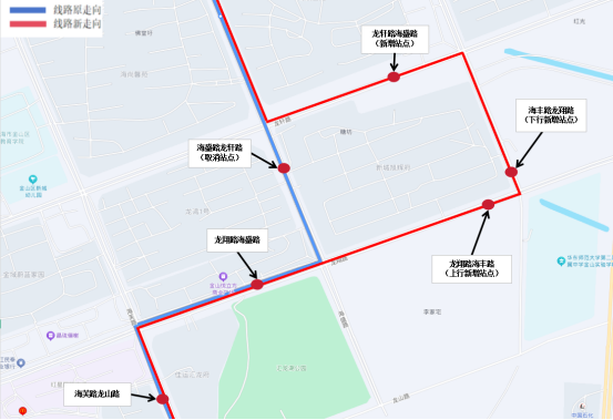 新增站点:龙翔路海丰路(上行)、海丰路龙翔路(下行)、龙轩路海盛路。