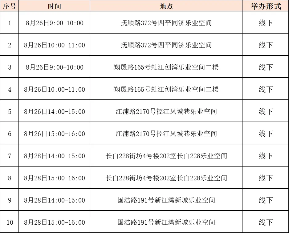 “15分钟就业服务圈”社区就业服务站点建设市政府实事项目作为人社部门常态化政府开放活动之一,我们将持续发布精彩服务内容,今天为大家带来静安区、杨浦区、闵行区、青浦区、崇明区、黄浦区、长宁区近期就业活动安排!