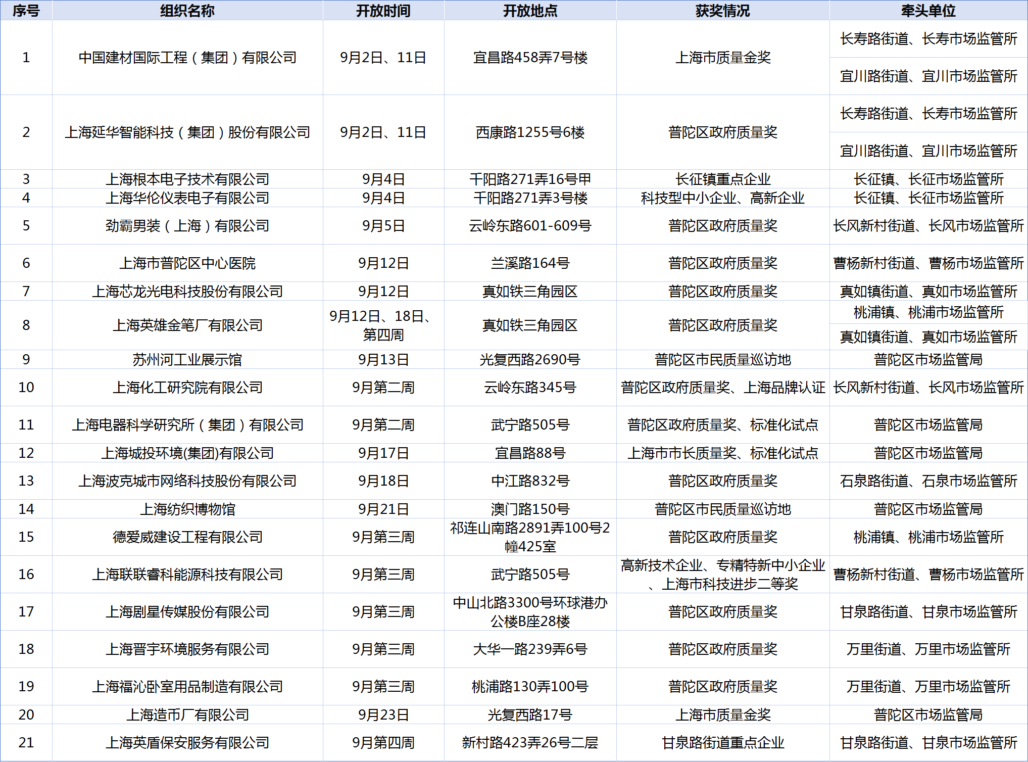 本次活动覆盖20多家单位,开放形式包括现场参观、经验交流与科普讲座,贯穿整个9月,具体信息如下: