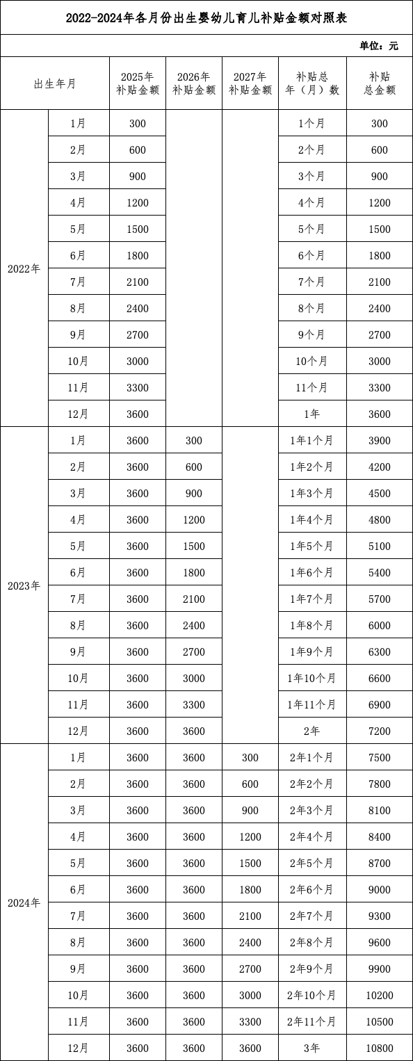 2.对于2025年1月1日之前出生且未满3周岁的婴幼儿,可按应补贴月数折算补贴金额。先申领整年补贴,再申领剩余月份补贴。