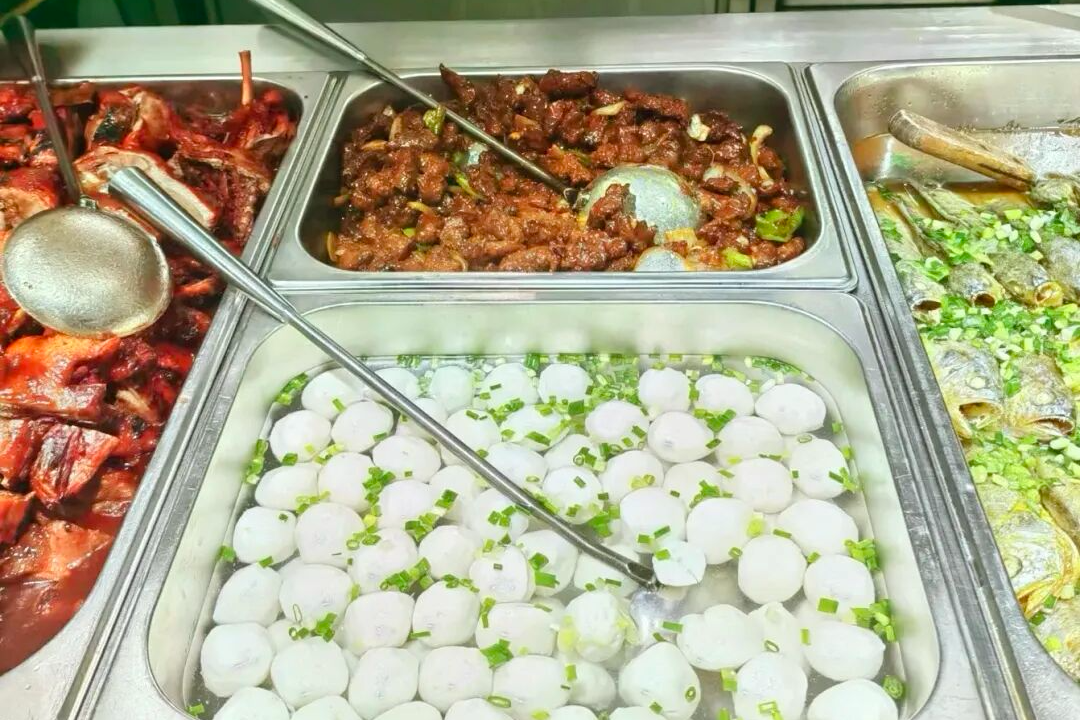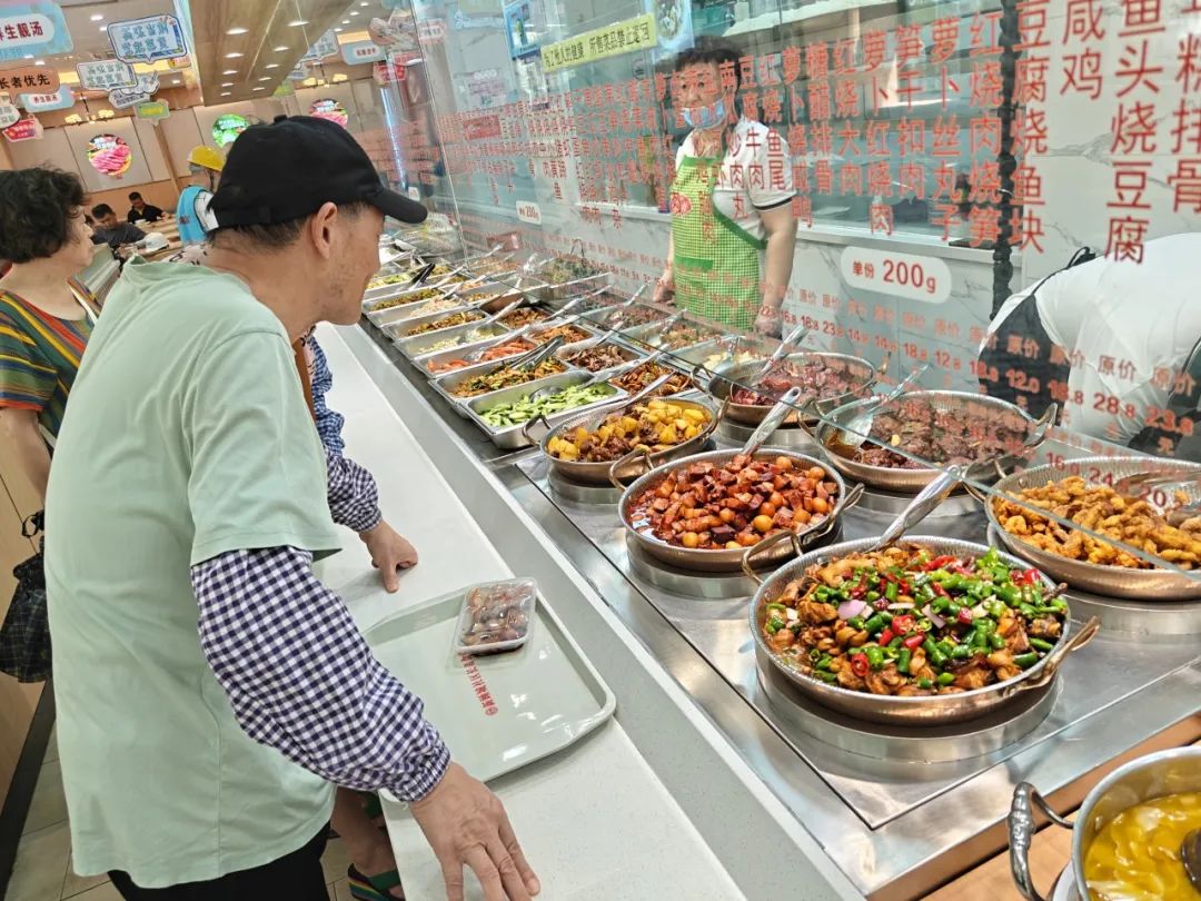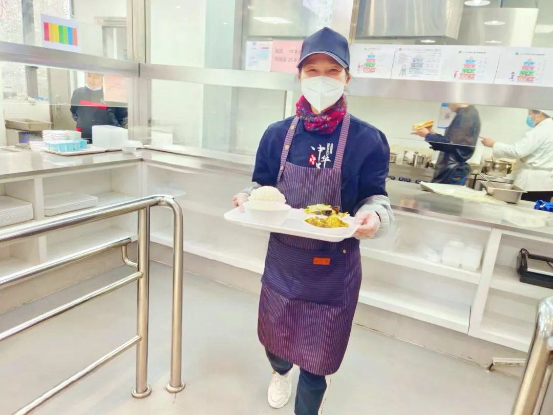 窗口打菜、荤素自选,葱烤大排、红烧肉百叶结、冰镇绿豆汤,老底子的烟火气飘香而来。食堂阿姨的手可一点都不抖,满满一大勺,盛的是一日三餐,是家的味道。