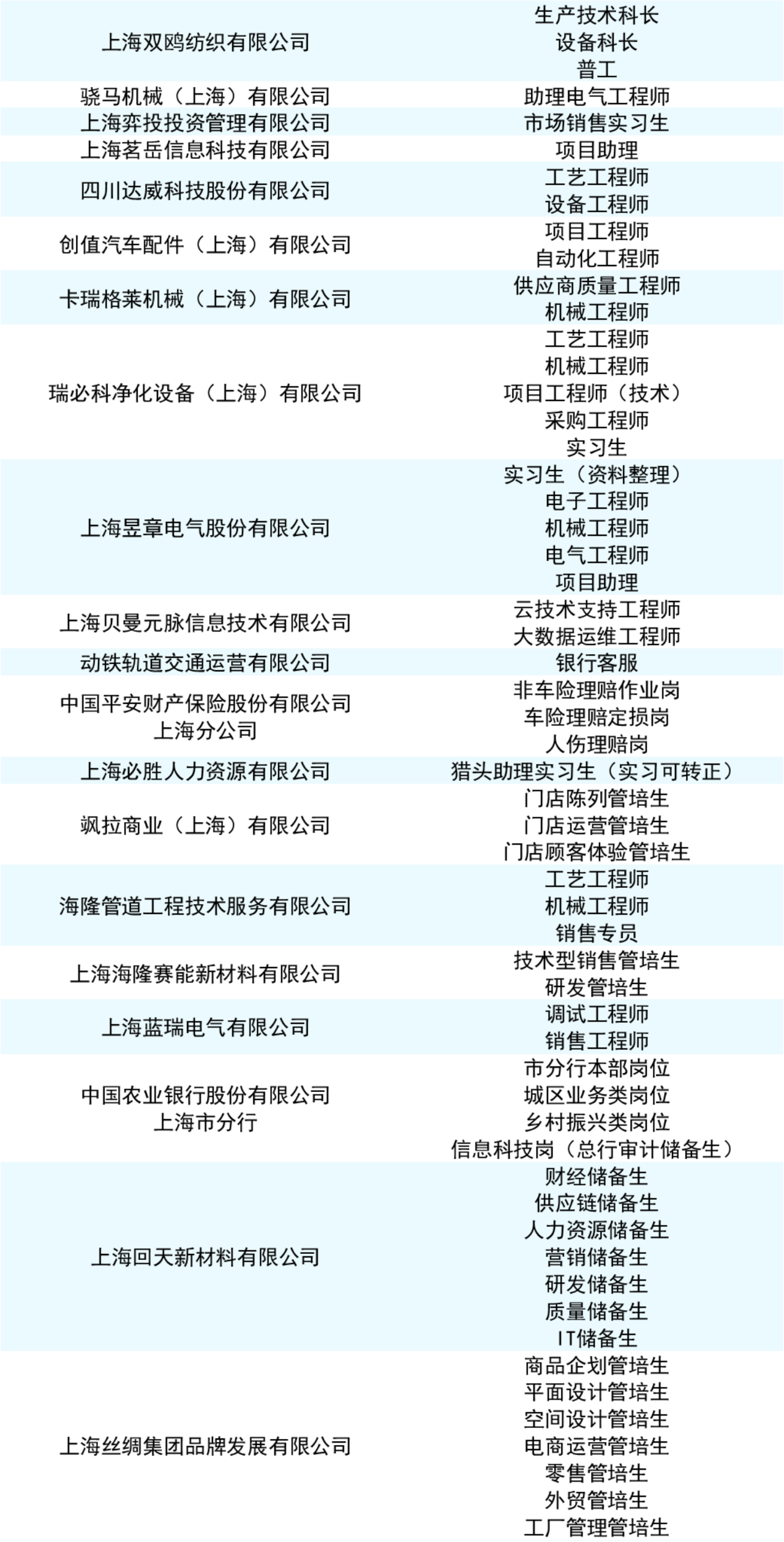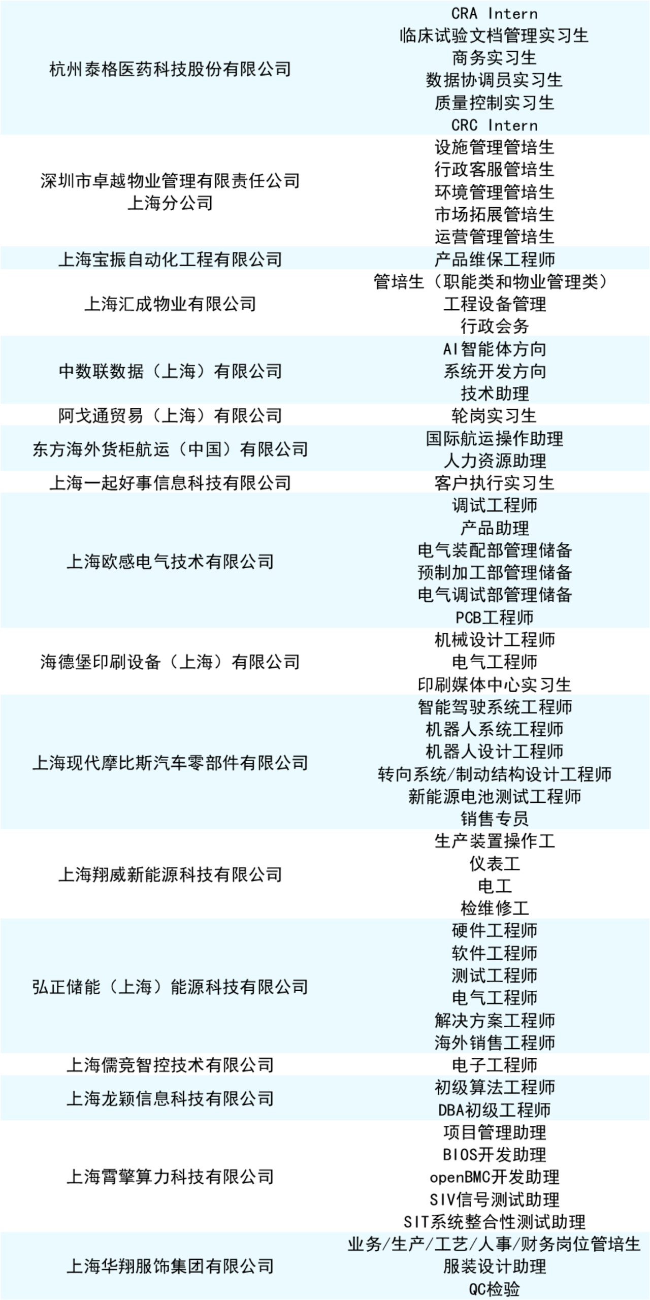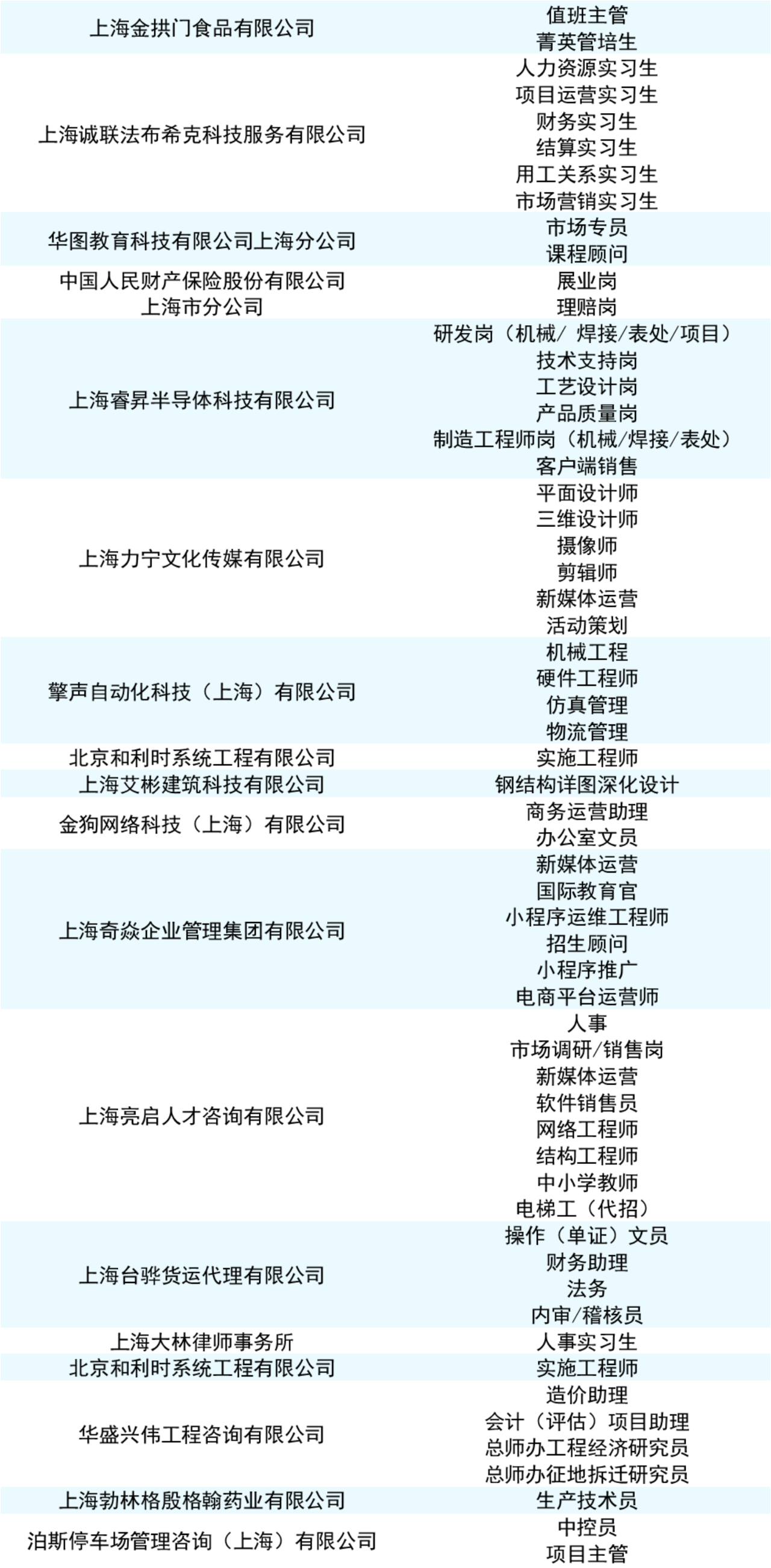 部分招聘名录