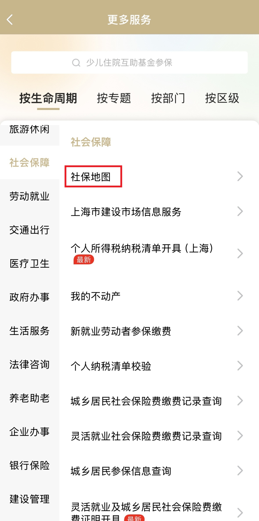 在首页搜索“社保地图”,或进入“社保”服务专区找到入口;