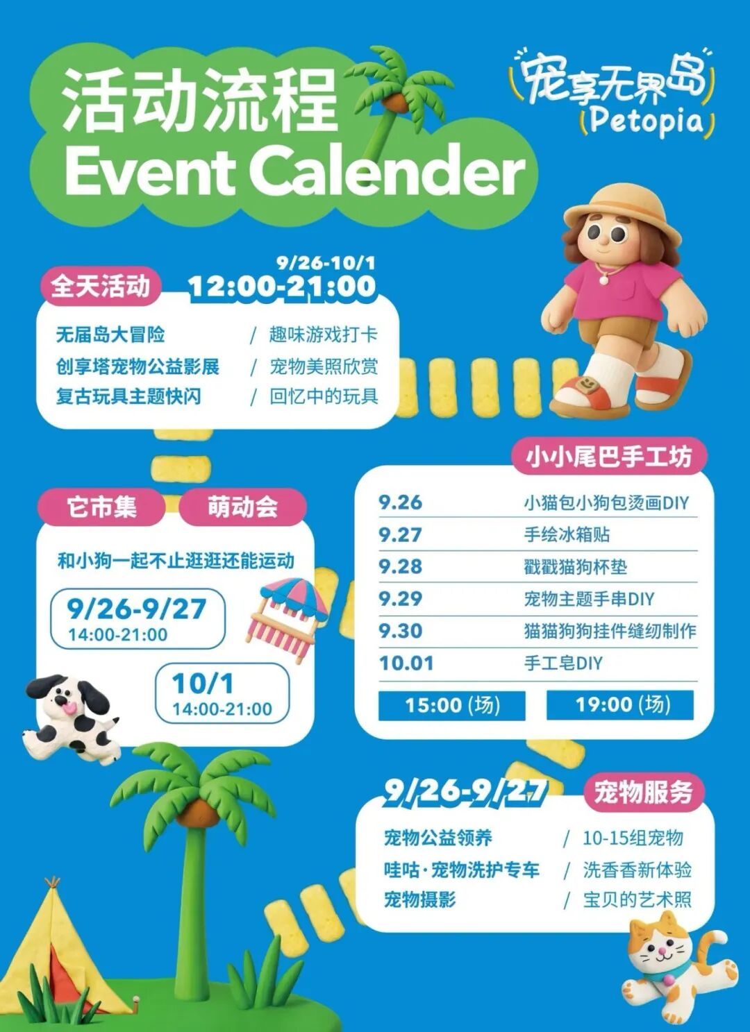 国庆中秋假期,毛孩子也有专属狂欢!即日起至10月1日,“宠享无界岛(Petopia)”强势登陆创享塔,为养宠家庭打造沉浸式萌宠乐园,现场设有萌宠市集、宠物运动会和手工体验区,家长可以带着毛孩子运动打卡、定制心意好物;公益板块将联动宠物救助机构,开展领养咨询,传递温暖。