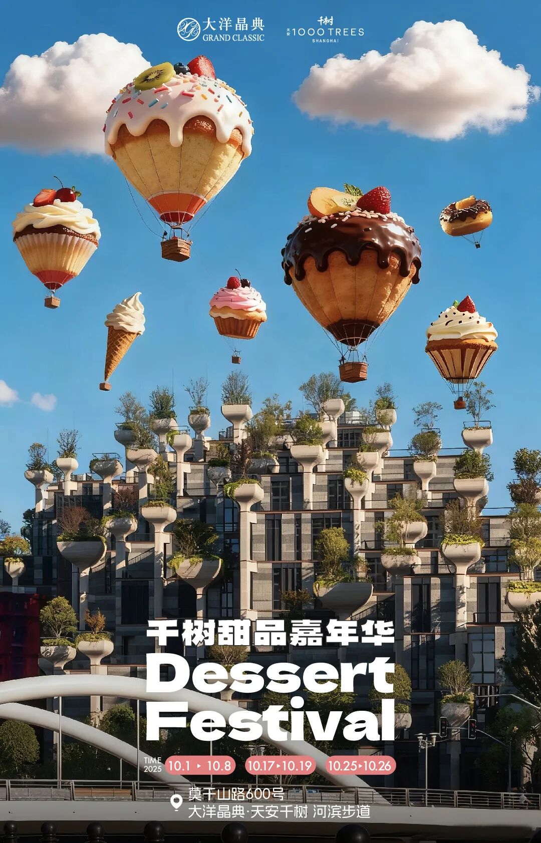 10月1日至10月8日每天11:00–21:00将在千树室外河滨步道开启“甜品嘉年华”,活动汇聚廣蓮申、勒芬、Openopen等10余家高含金量品牌,涵盖上海首次的稀缺款、社交平台爆火的网红款及社区小众宝藏款。