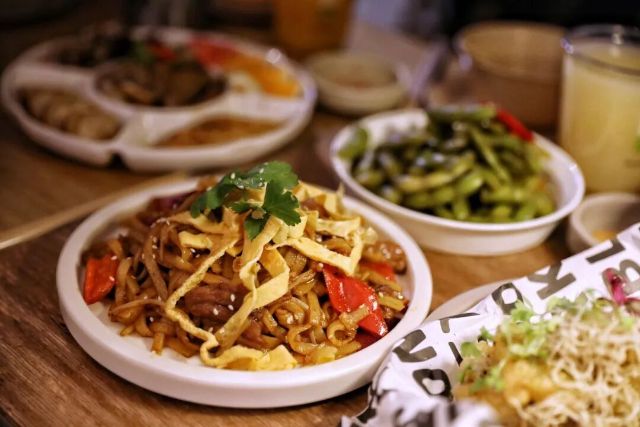 作为上海首个开放式滨水市集,BLOOMARKET的载体是一栋拥有104年历史的旧厂房。项目团队以极简设计保留了厂房大跨距工业结构,加入玻璃幕墙与橙色大楼梯,让老建筑既留存历史记忆,又与西岸现代风貌衔接。目前市集已吸引30余家特色餐饮品牌入驻,从云南创意菜“胡麻”、西北风味烧麦,到东南亚融合餐厅“CUCURUCU”,构建起覆盖多元口味的“世界风味图谱”,而“吃熬炒夜档”的推出,则进一步激活了滨江夜间消费。