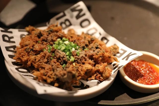 “今年夏季推出夜档,就是想响应夜经济号召,给大家一个吹江风、吃小食的地方。”BLOOMARKET夜宵负责人李成文介绍说,“吃熬炒夜档”是谐音梗,主打潮汕风味,与市集白天的西餐业态形成“日西夜潮”的错位经营。即18:00前,档口以西餐、下午茶为主,服务周边白领;18:00后夜档模式同步开展,潮汕卤味、砂锅粥、现炒牛河等菜品上线;21:00后则完全转为夜档,直至凌晨2:00。为贴合上海本地口味,团队特意将捞汁螺片、卤鸭舌等经典潮汕小食调整为微甜口,“毛豆、花生、炒牛河卖得最好,周末炒牛河每天限量二三十份。”
