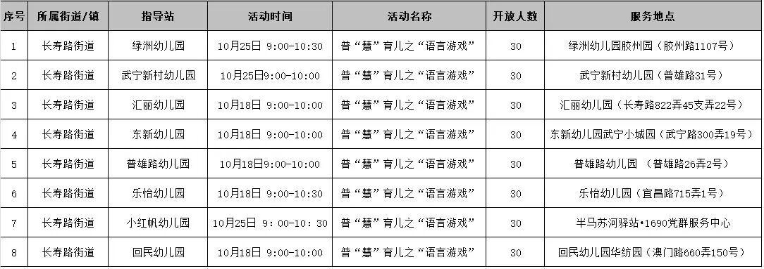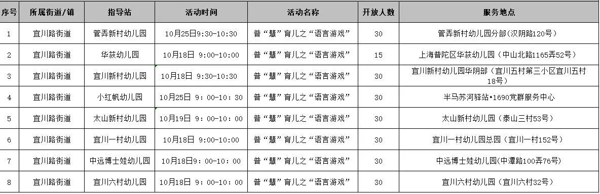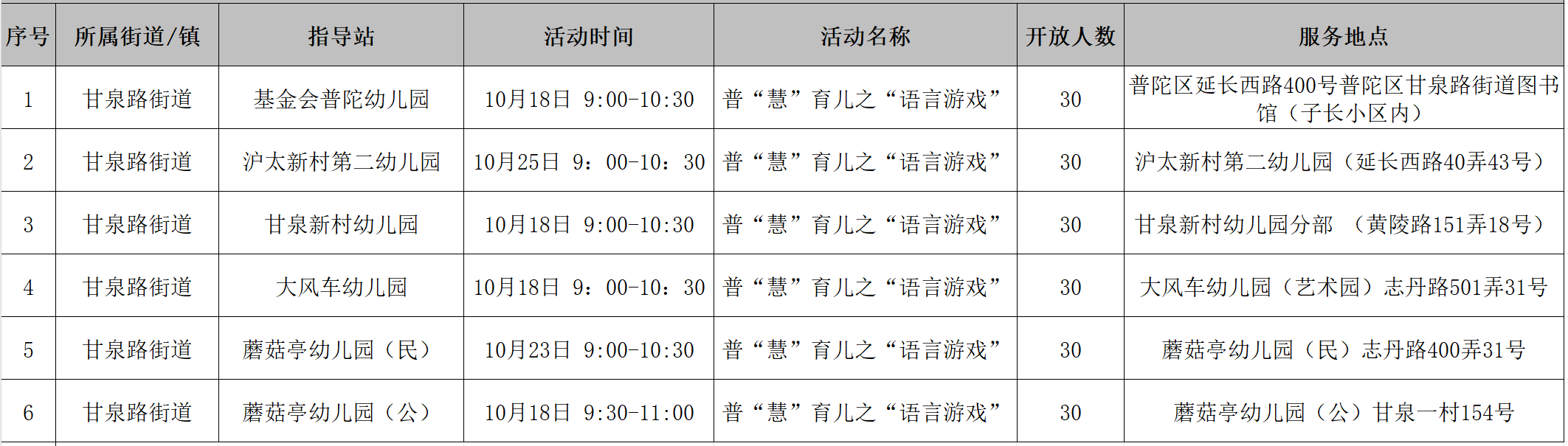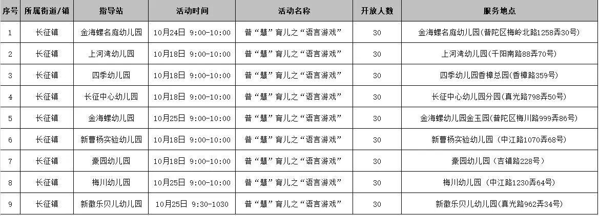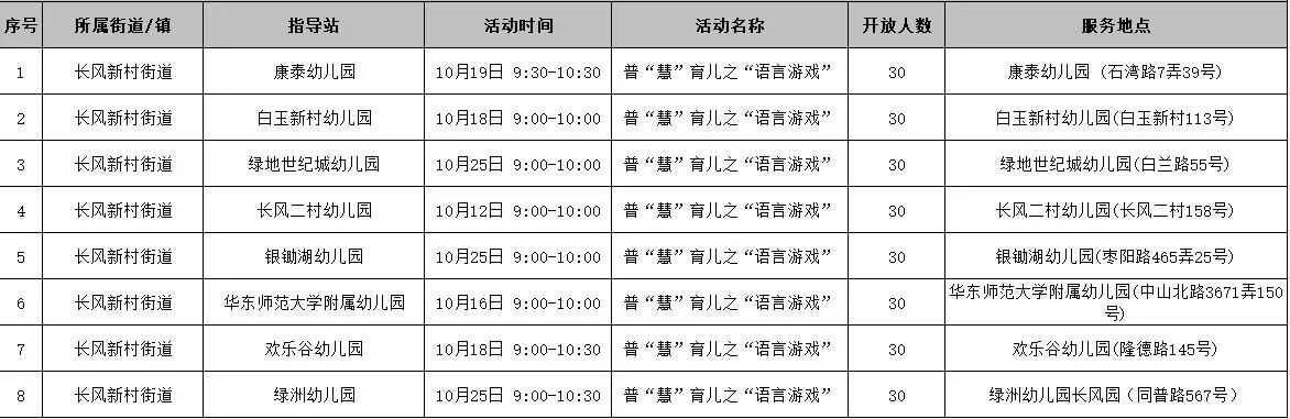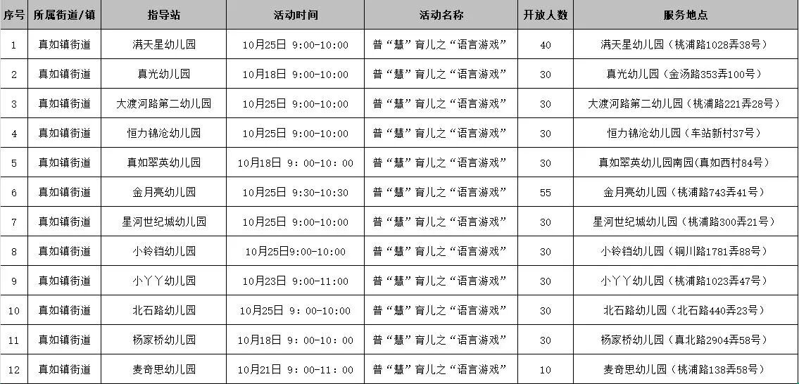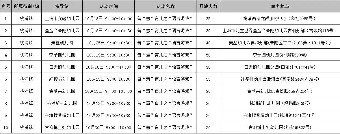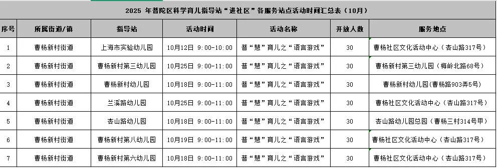 10月,普陀区75个科学育儿指导站将以“科学育儿——语言游戏”为主题,组织开展各类亲子活动,为辖区内3岁以下婴幼儿家庭提供科学育儿指导免费公益服务。
