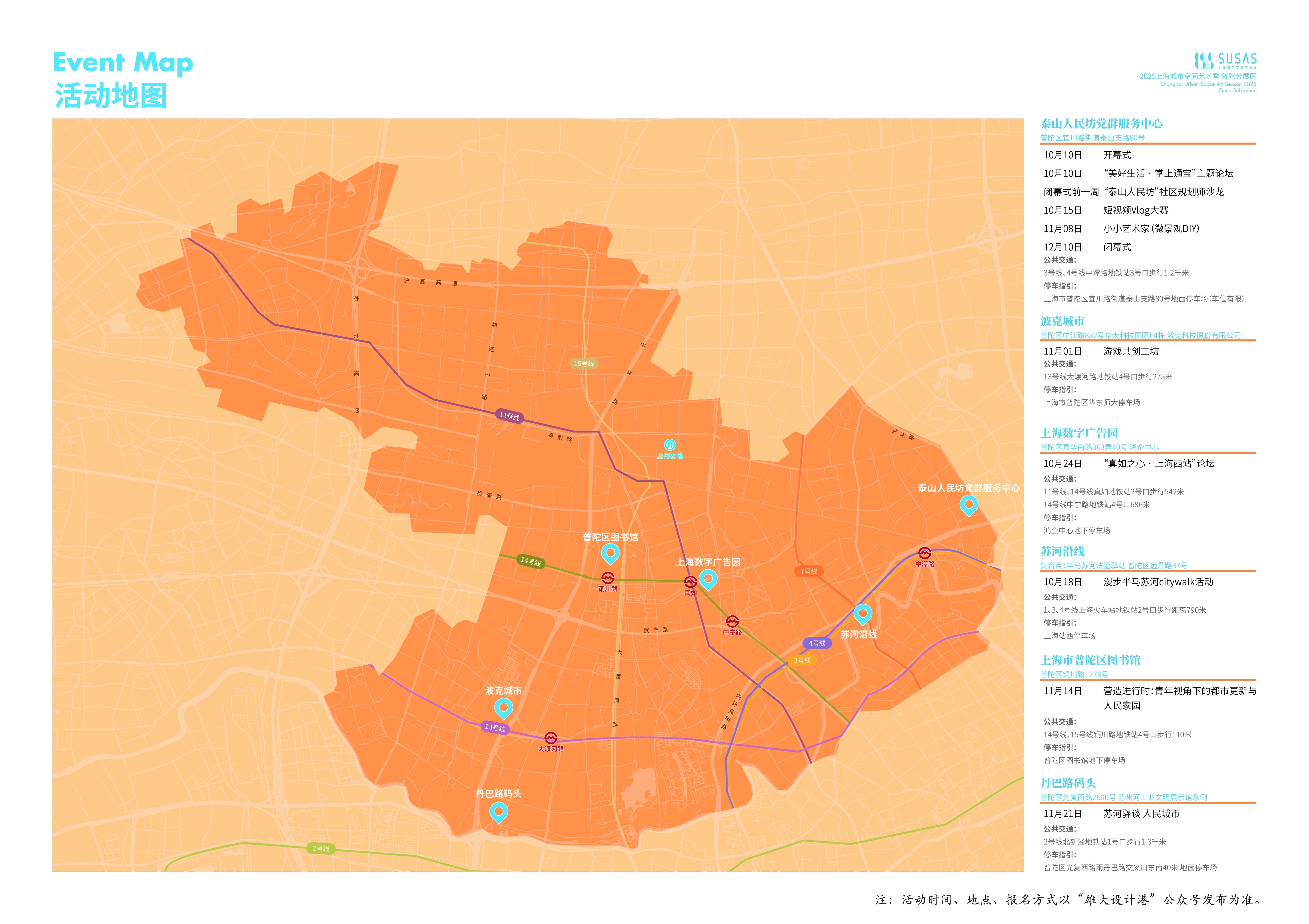艺术季期间,普陀分展区还将举办系列专题论坛与特色活动。专题论坛聚焦数字民生、区域发展、公共空间等议题,大咖齐聚碰撞思想;特色活动丰富多元,户外漫步、创意展示、跨界融合、亲子创作、新书推介、规划交流轮番上演,让艺术深度融入生活。