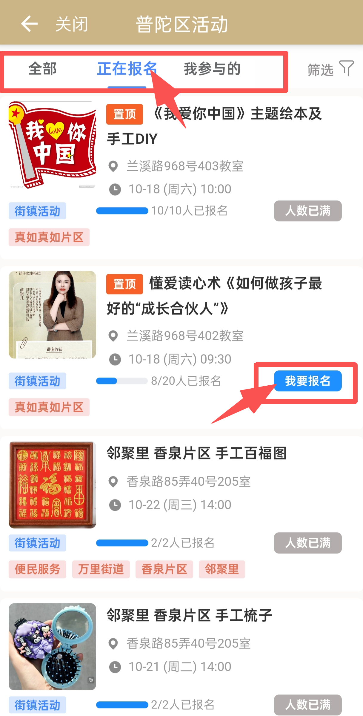 想参加活动,却不知道去哪儿报名?“随申办”普陀旗舰店早就为你准备好了一大波“缤纷活动”,只等你参加!