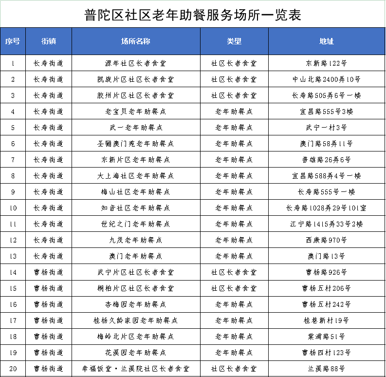 最新!普陀区社区老年助餐服务场所一览表来啦(10月16日更新)