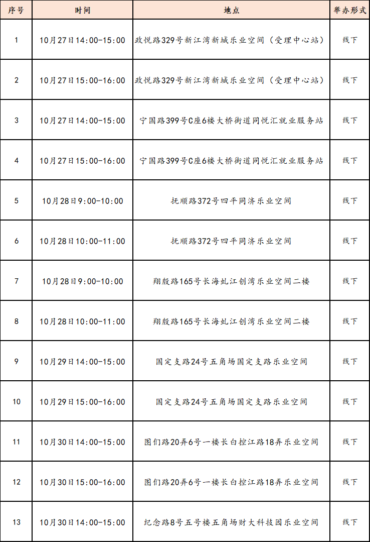 “15分钟就业服务圈”社区就业服务站点建设市政府实事项目作为人社部门常态化政府开放活动之一,我们将持续发布精彩服务内容,今天为大家带来长宁区、杨浦区、闵行区、青浦区、崇明区、黄浦区、静安区近期就业活动安排!