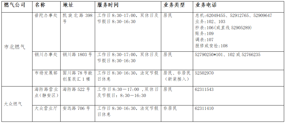 普陀区燃气企业各营业网点一览表来啦! 2025-10-31 来源:普陀区人民政府