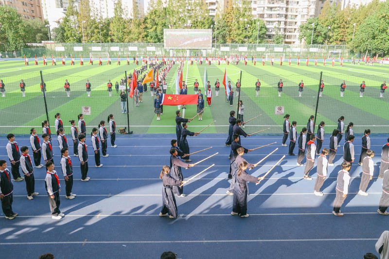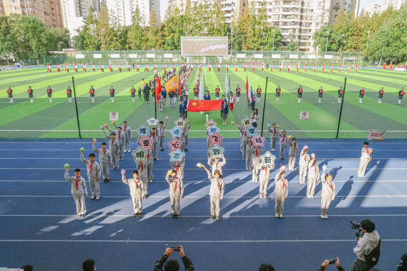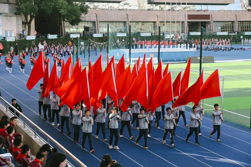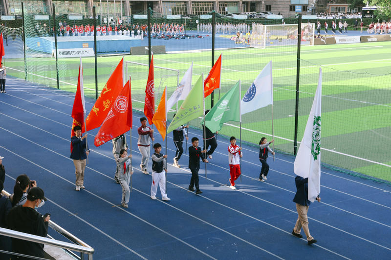 随后,卢湾二中心小学、七色花小学、巨鹿路一小、上师大卢实小、交大附属黄浦实验小学、清华中学、交大附属黄浦实验中学、向明初级中学、金陵中学和向明中学的代表队方阵依次走过主席台。各校运动员步伐整齐有力、口号铿锵响亮,展现青春洋溢、奋发向上的精神风貌。