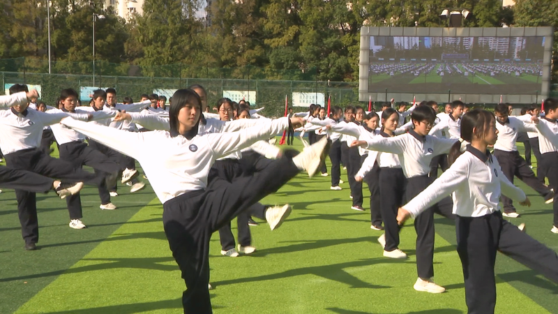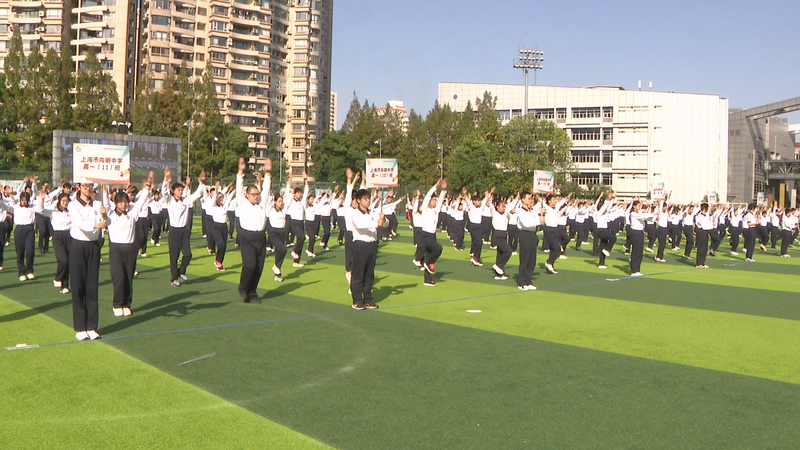 在熟悉的旋律声中,第三套全国中学生广播体操《舞动青春》展示压轴登场。抬手、转身、跳跃,学生们身姿挺拔、动作到位,尽展活力与风采。