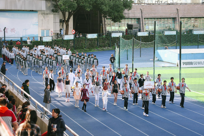 开幕式后,各表演队伍移师卢湾体育馆内,共同参加小学组开场仪式。