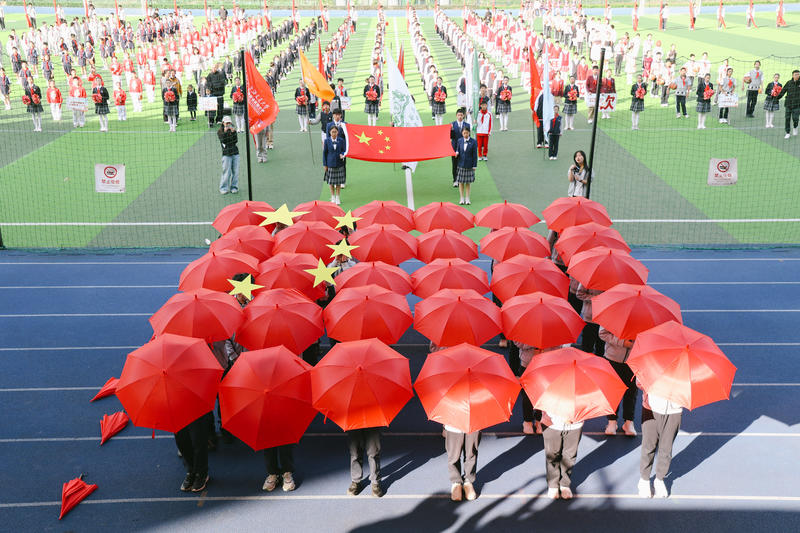 上午8时,运动会开幕式开始。伴随着激昂的《运动员进行曲》,国旗队、集团旗和校旗队、红旗方阵、鲜花方阵率先入场。