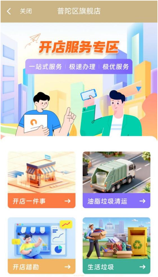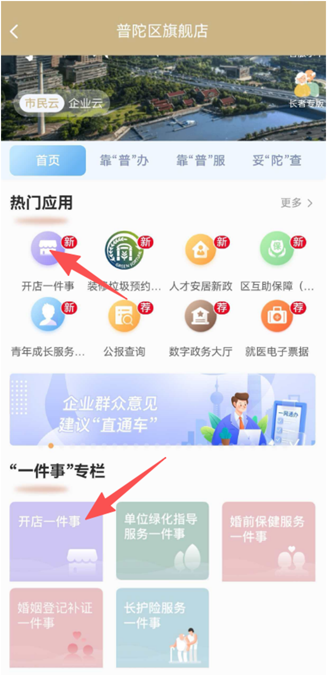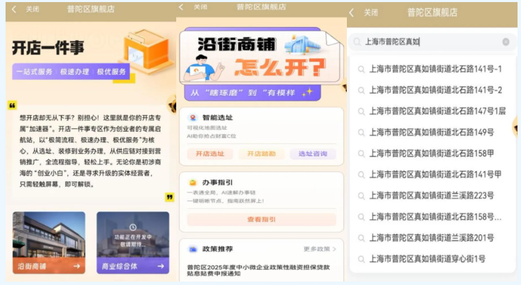 随申办APP上的普陀旗舰店“开店一件事”专区就是冲着这些痛点来的!它定位为创业者的全周期数字助手,不管你是想开便利店、餐饮店还是美容美发店,这里都能提供从选址到开业的一站式服务。