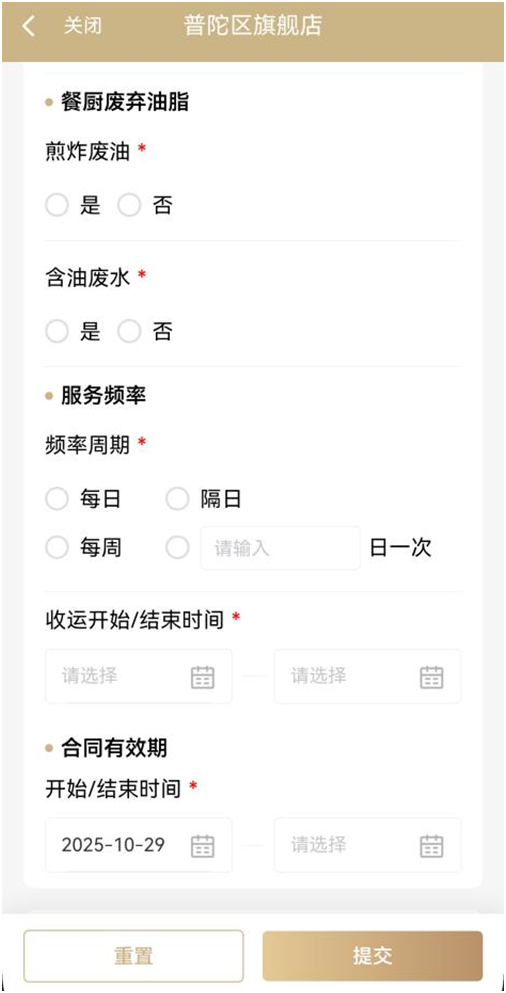 1、油脂垃圾清运:点击即可填表预约油脂垃圾清运,细节周到,垃圾回收周期频率可控;