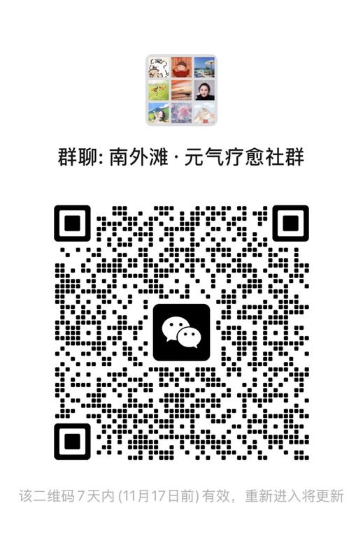 扫码加入「南外滩・元气疗愈社群」微信群,获取养生干货、课程提醒、活动预告,和搭子们在线唠嗑;