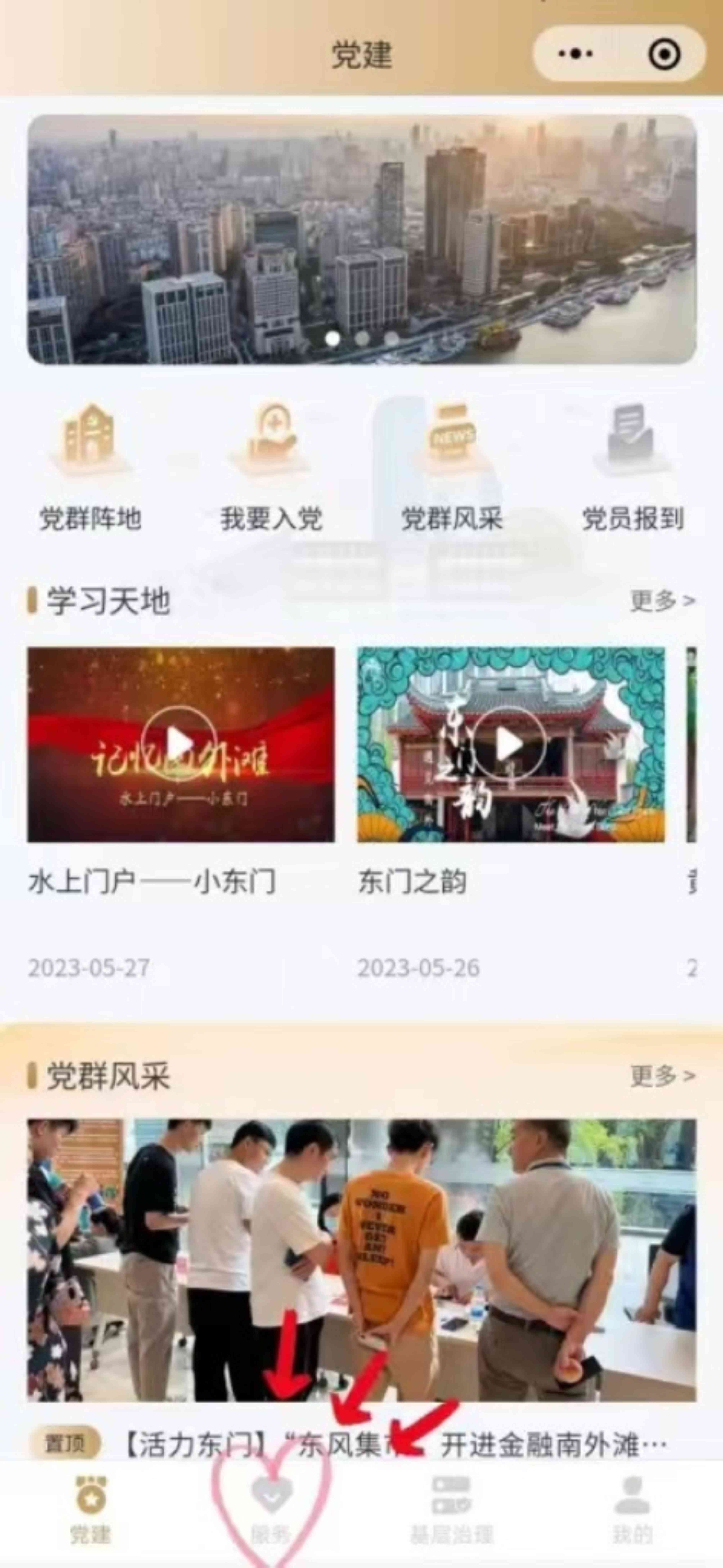 2、点击“服务”板块