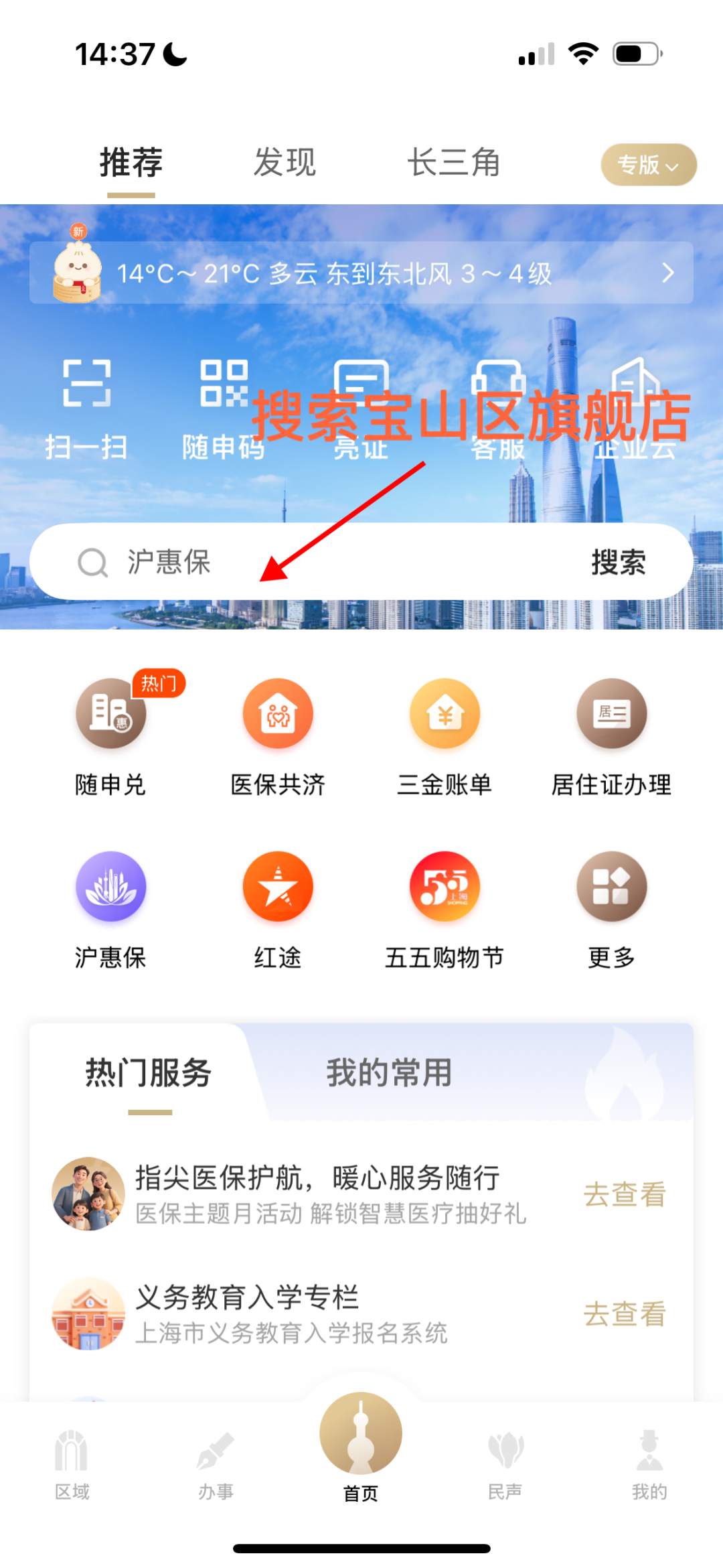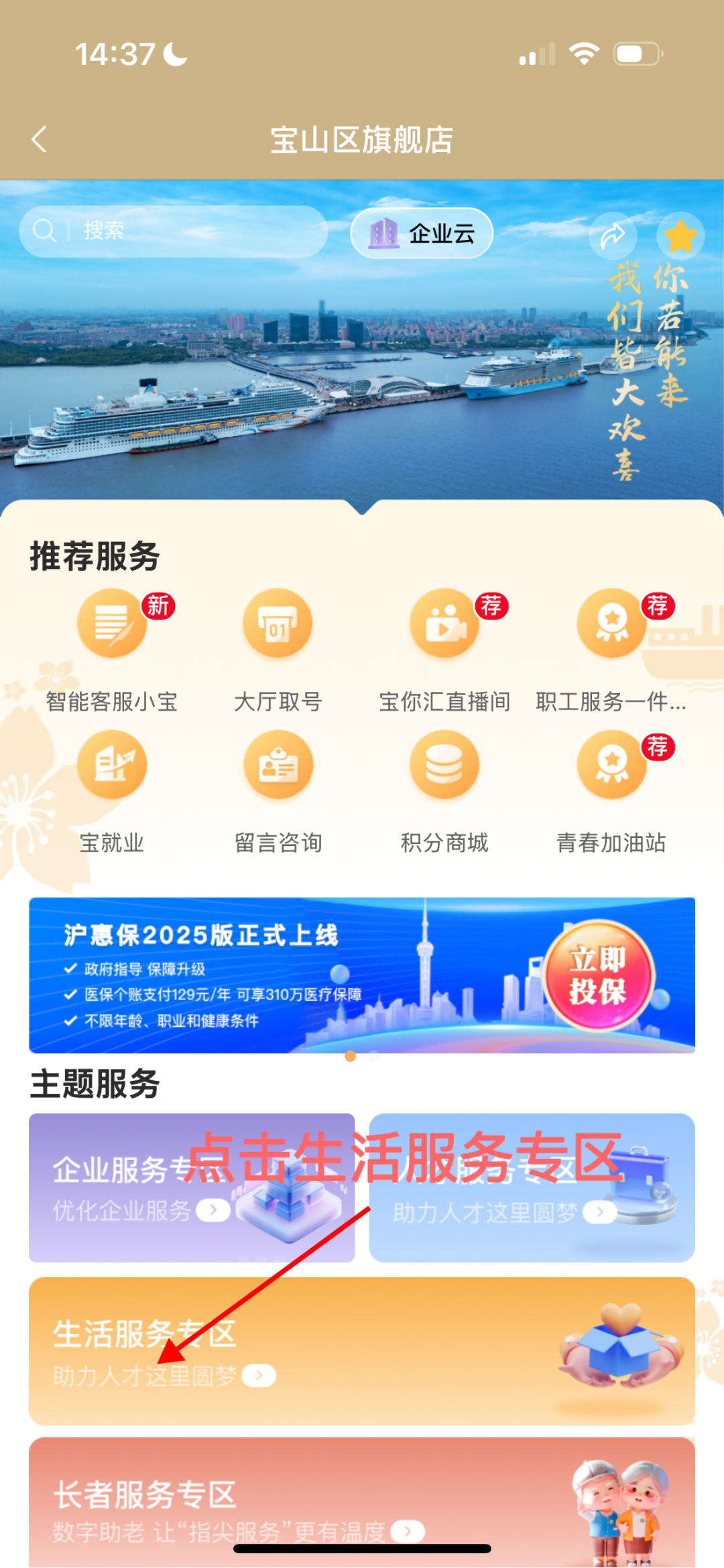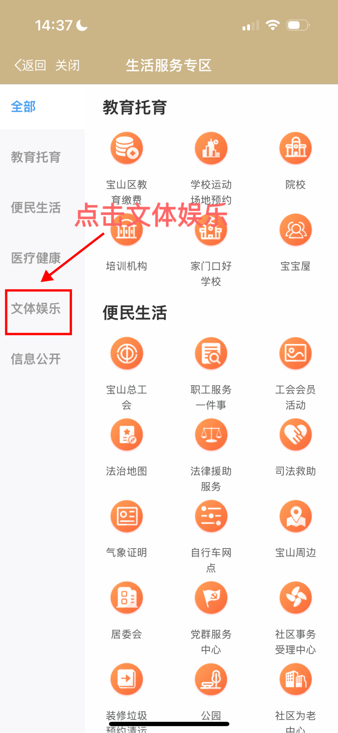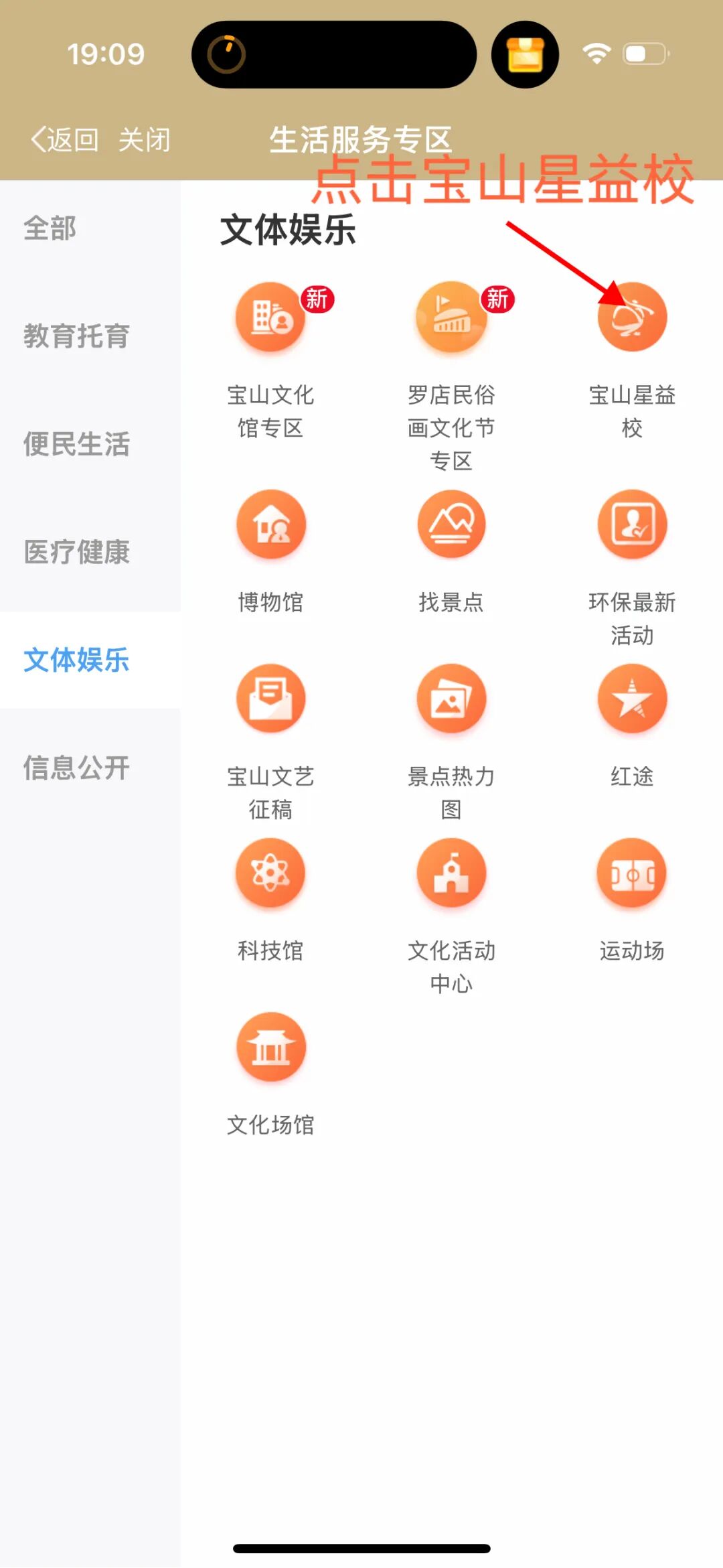 2.下载随申办APP或微信搜索“随申办”小程序或支付宝搜索“随申办”小程序,再搜索“宝山区旗舰店”,点击主题服务菜单栏中的“生活服务专区”—“文体娱乐”—“宝山星益校”进行报名。