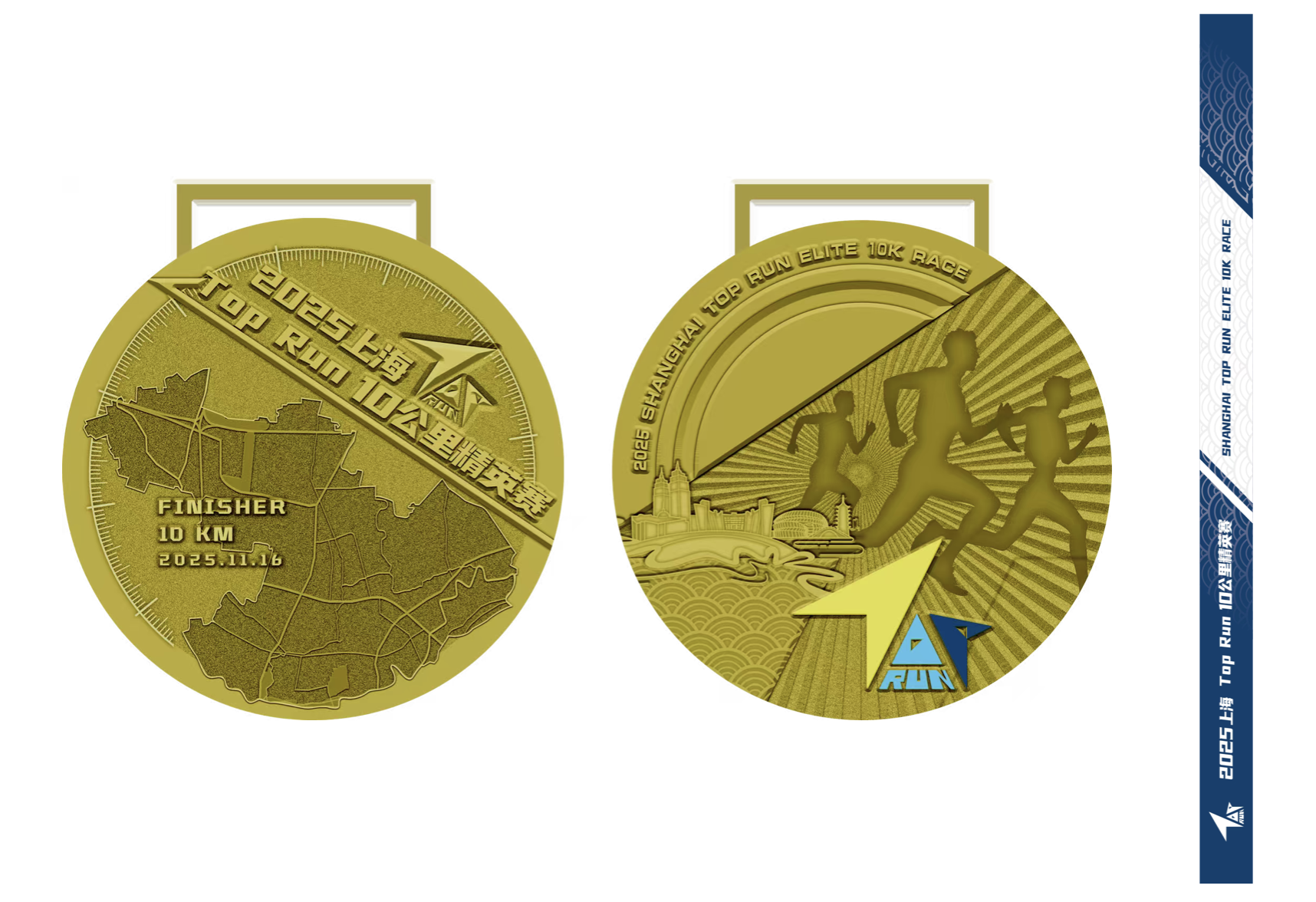 完赛奖牌:由上海造币厂特别制造,以苏州河水纹、蓝白配色、地标雕刻为灵感