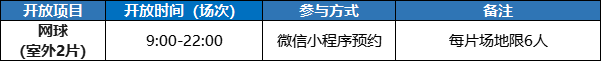 1.开放项目:网球、乒乓球、篮球、健身、保龄球、游泳、体育舞蹈