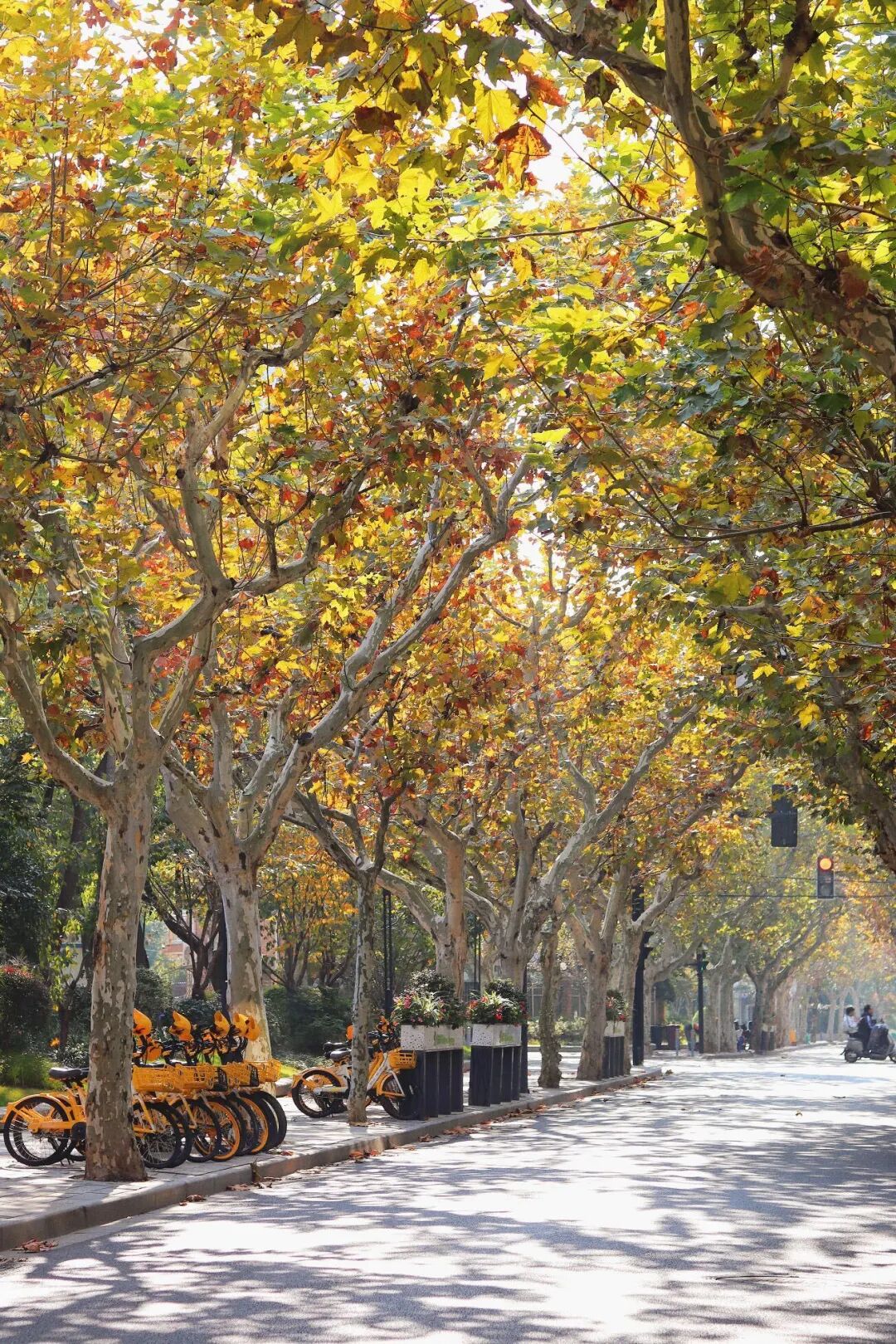 三条特意保留落叶景观的道路,其树种均为悬铃木,又称法国梧桐,享有“行道树之王”的美誉。落叶时节,金黄色的叶片在空中翩翩起舞,缓缓飘落,为大地铺上一层绚烂的金黄。漫步其间,仿佛步入了一个童话世界。一棵棵树木相互交织,枝叶繁茂,共同形成了一条林荫大道。下面,让我们一起重温往年的落叶诗意,循着这份美好,再赴即将到来的金黄之约吧。