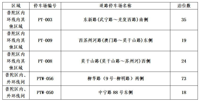 根据市、区公安交警部门核定,本次新增的5处智慧道路停车场具体设置信息如下表: