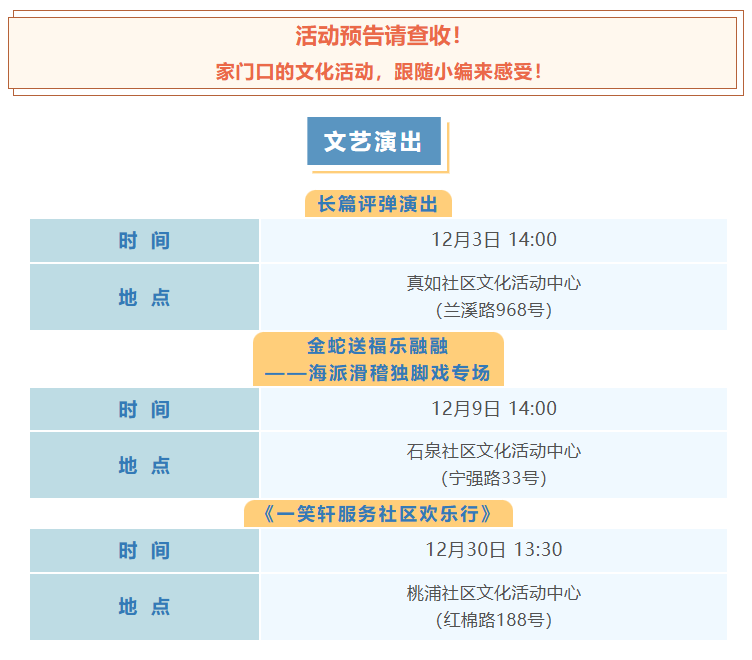 精彩不重样!普陀区12月文化配送活动预告来啦