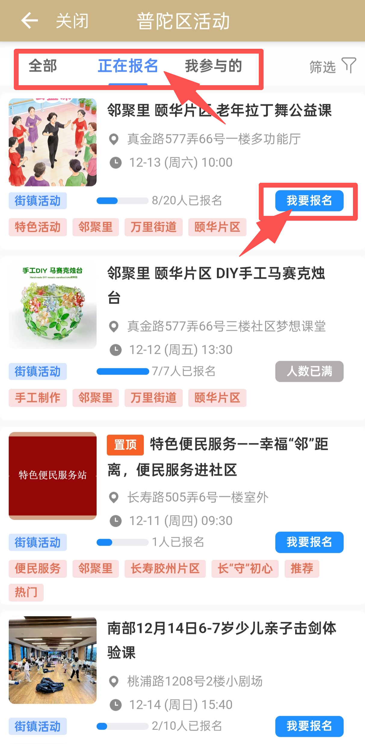 想参加活动,却不知道去哪儿报名?“随申办”普陀旗舰店早就为你准备好了一大波“缤纷活动”,只等你参加!