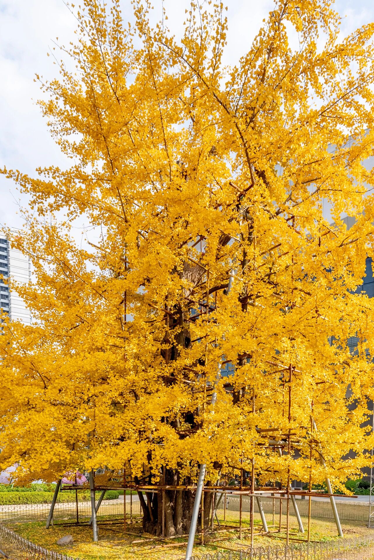 结束老街的市井漫游后,可移步上海真如环宇城MAX,解锁银杏打卡的现代玩法。广场上编号“0057”的500年古银杏,是普陀区最早被纳入保护的古树名木,深秋时节满目金黄,为银杏爱好者必打卡之地。