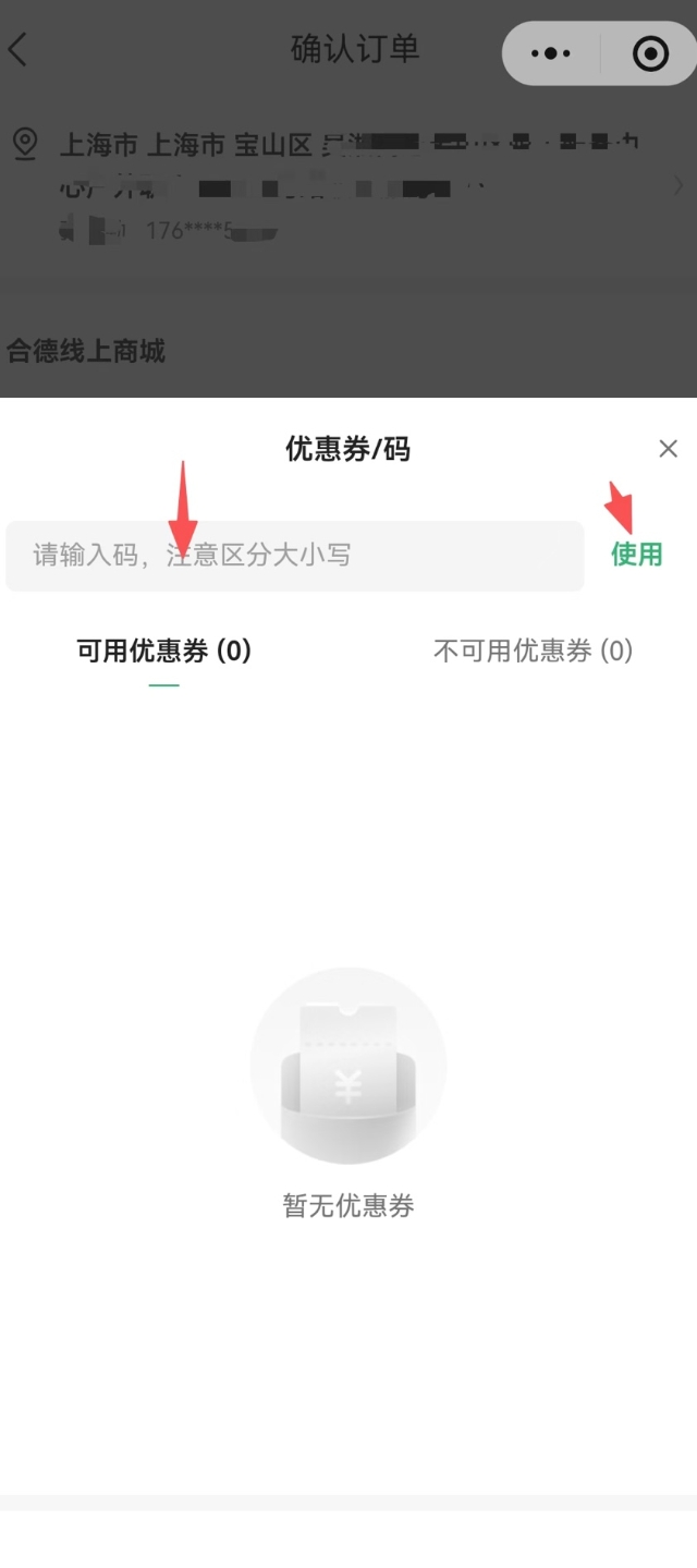 进入活动商品页面,点击“立即购买”→同意勾选相关协议,授权登录→活动商品点击“确认”→填写收货地址→输入收到的优惠码,点击“使用”→确认金额优惠后进行购买。