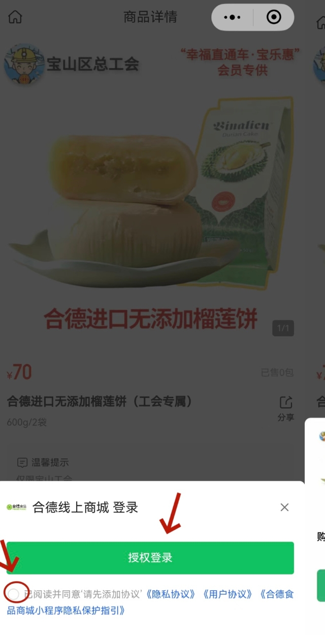 单击打开下方小程序码,长按并选择“合德食品商城”进入活动商品页面: