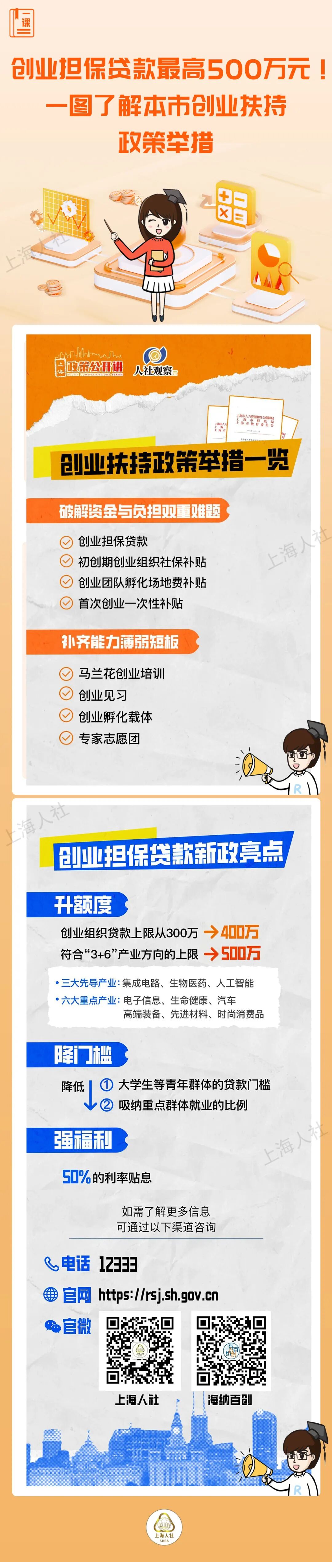 创业也无忧!本市有一系列创业扶持政策举措,其中创业担保贷款最高500万元。赶紧来了解一下吧!