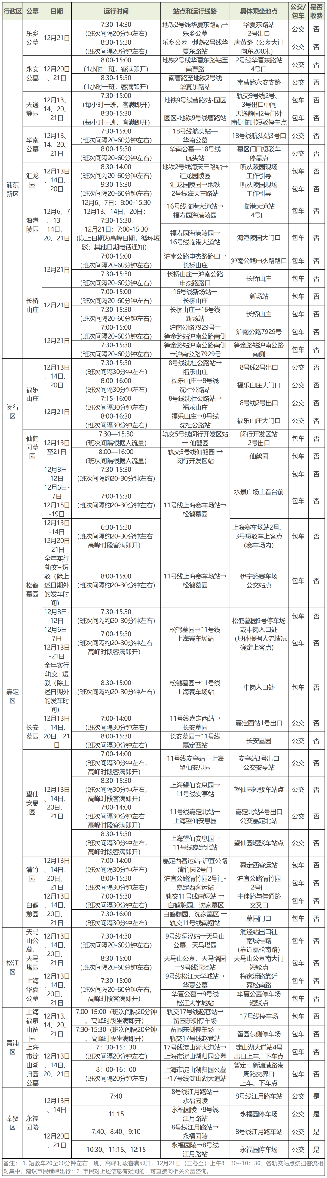 2025年本市部分公墓冬至祭扫轨交短驳车安排表