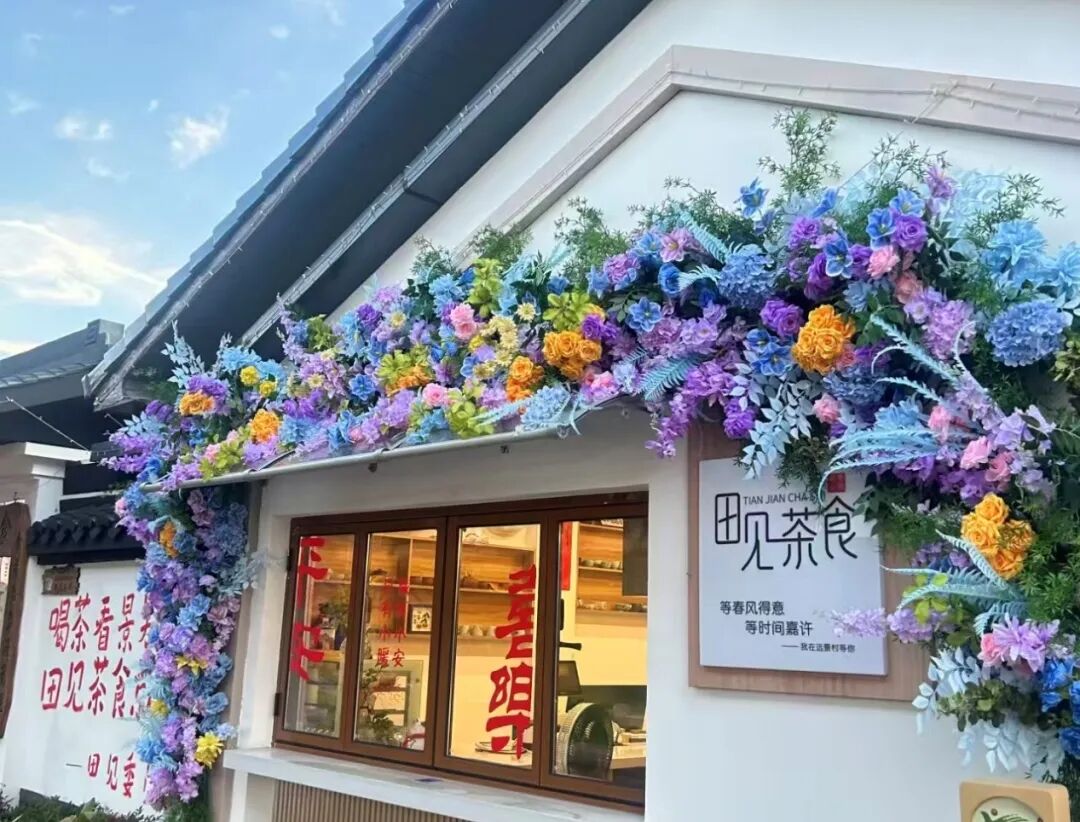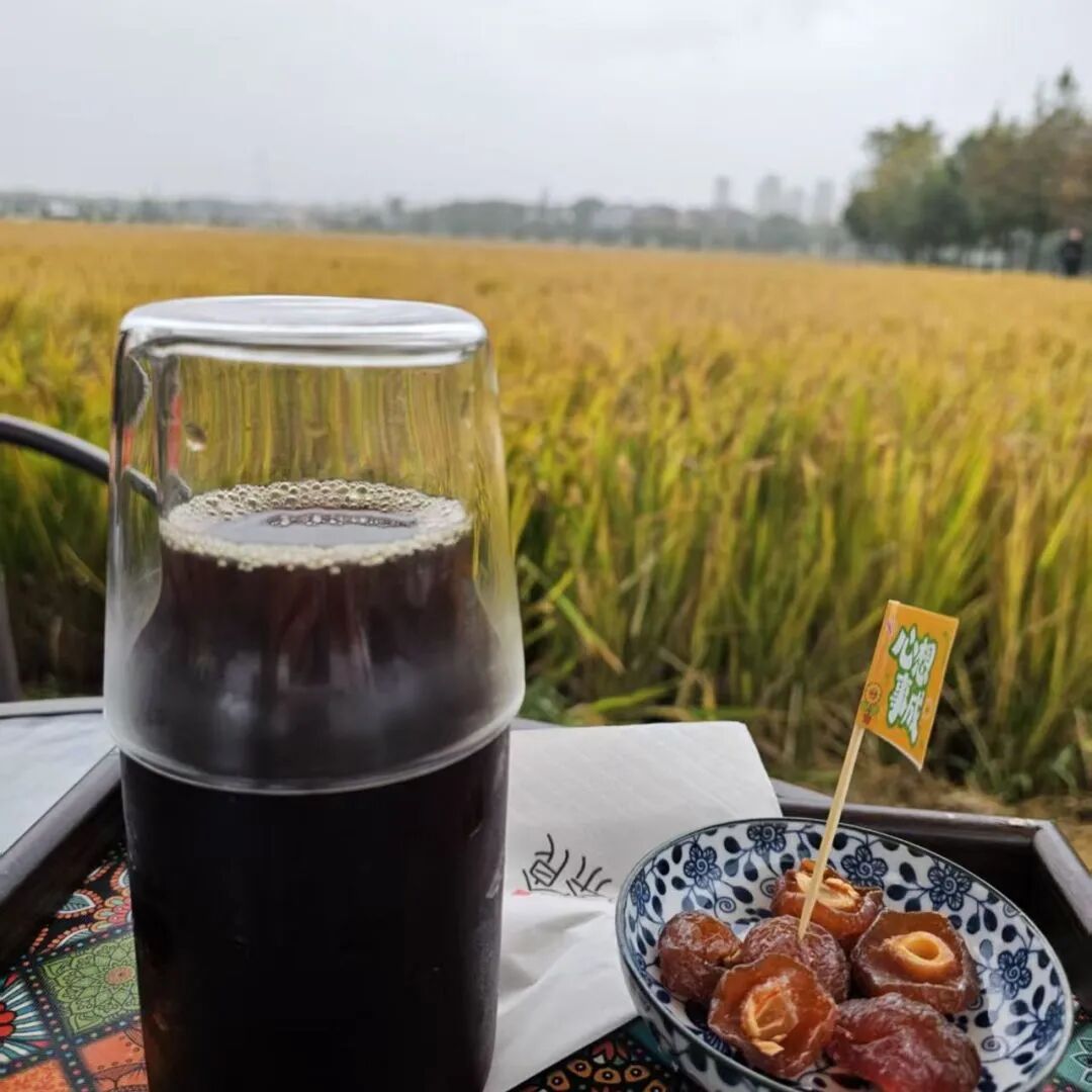 藏于乡野深处的古朴农家院,青石板小径蜿蜒通向茶舍,原木家具与绿植相映成趣。冬日围炉可解锁限定美味,桂花暖梨茶慢炖入味,桂香与梨甜交融;年糕拿铁米香醇厚,创意十足。再烤一块流蜜的烤山芋,一口便能回味童年的滋味。窗边座位可赏田野风光,春日还能看游客挖野菜,是独自放空或小众打卡的宝藏之地。