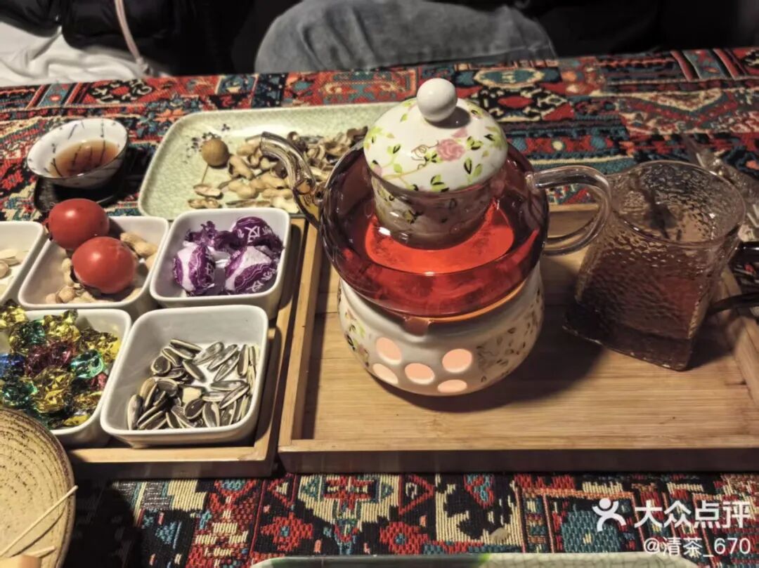 被熟客亲切称为宝山“有风小院”,融合了咖啡馆的轻松与茶馆的禅意。复古杂货风的装修满是故事感,每一个角落都适合拍照打卡。冬日围炉煮茶是招牌项目,可选醇厚的普洱茶,或是果香四溢的花果茶,搭配烤棉花糖、年糕,文艺范儿拉满。无论是朋友小聚闲谈,还是独自静坐阅读,都能在此觅得一份惬意。