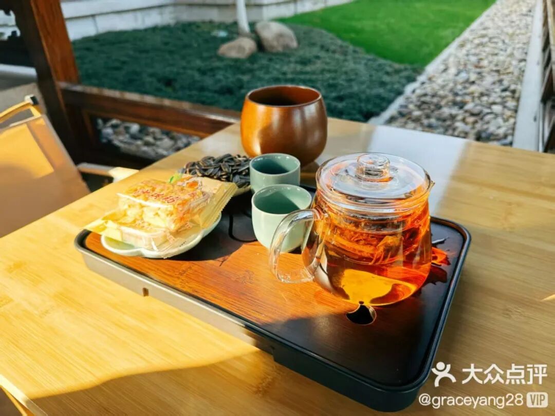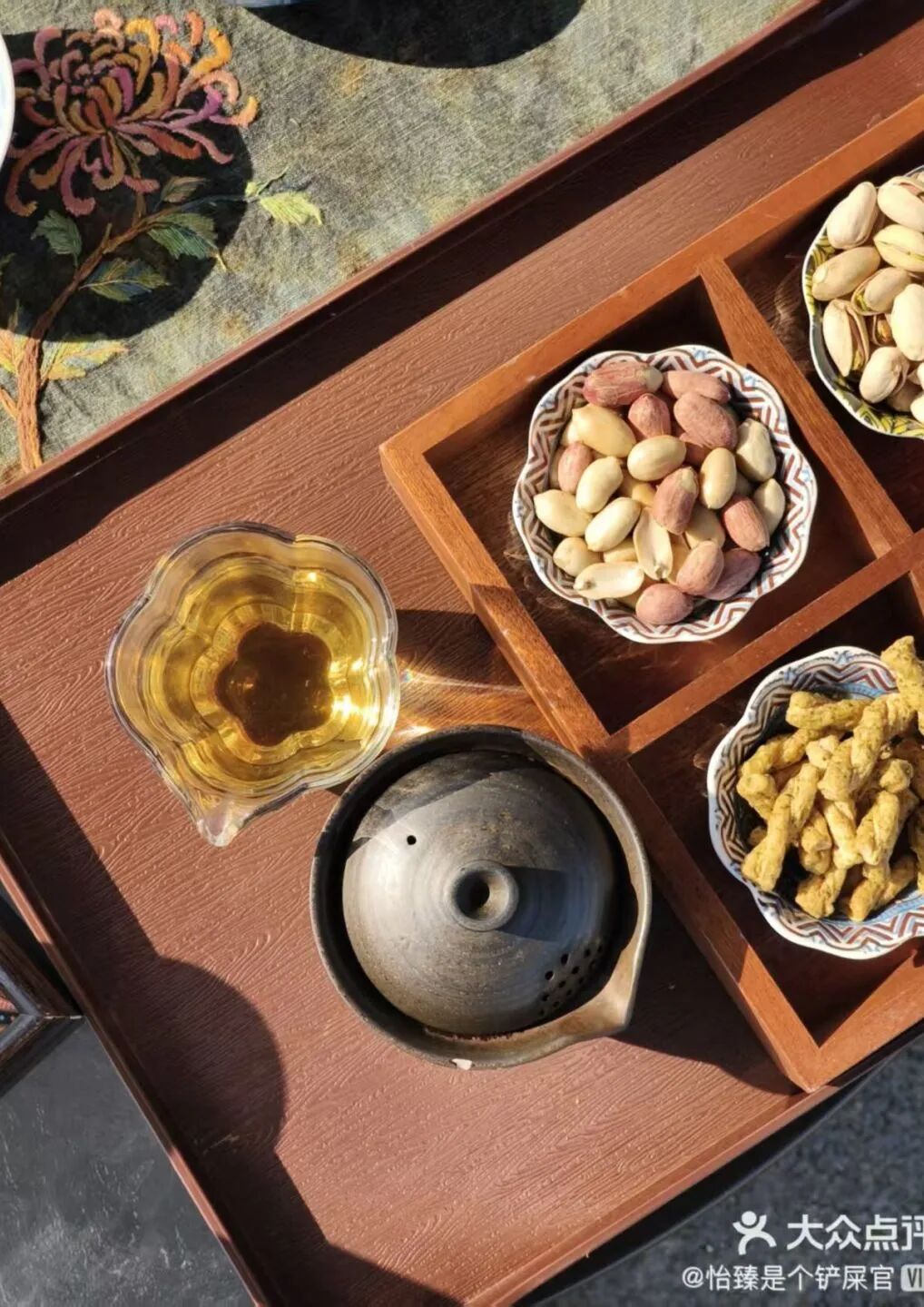 藏身顾村公园旁的治愈小院,绿植环绕宛如城市山野秘境。露天帐篷搭配围炉煮茶是标配,清甜回甘的政和白茶在炭火上慢慢升温,佐以坚果、点心与水果,暖炉旁听着水沸声,治愈感十足。露台的原木桌椅与绿意相映成趣,下午时分来此,静待夕阳西下,氛围感拉满,是闺蜜小聚、情侣约会的优选之地。