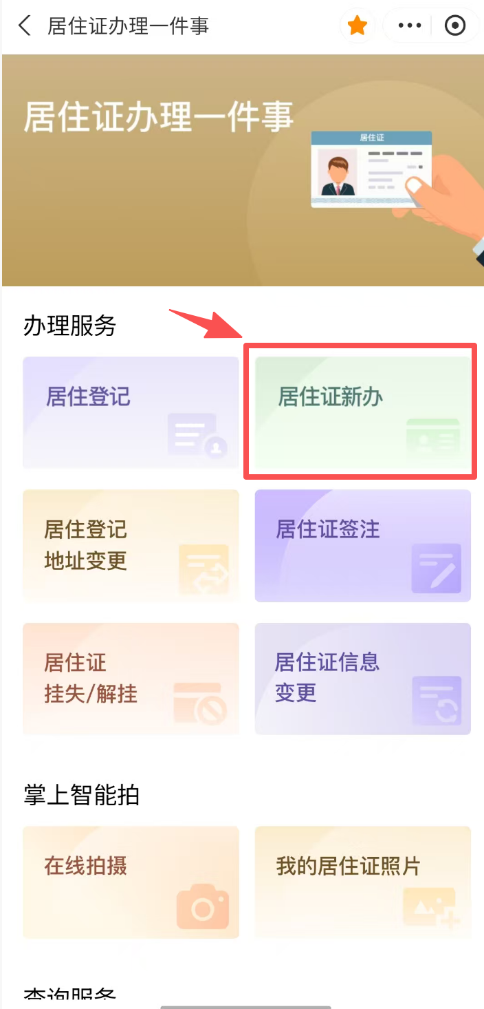 1、在“居住证办理一件事”服务页选择“居住证新办”,按照页面流程进行办理。