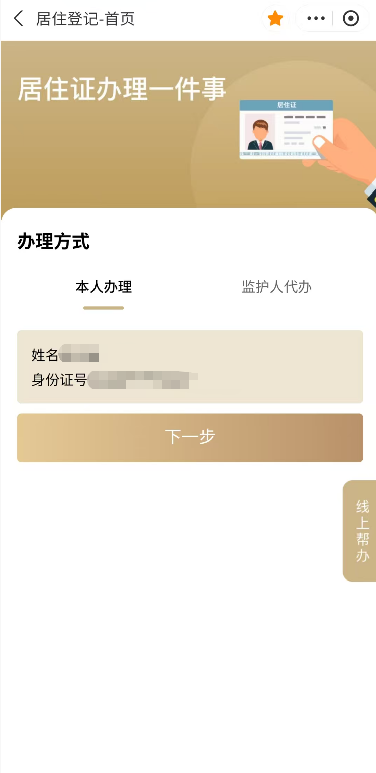 1、点击“居住登记”,按照实际情况选择本人办理或监护人代办。