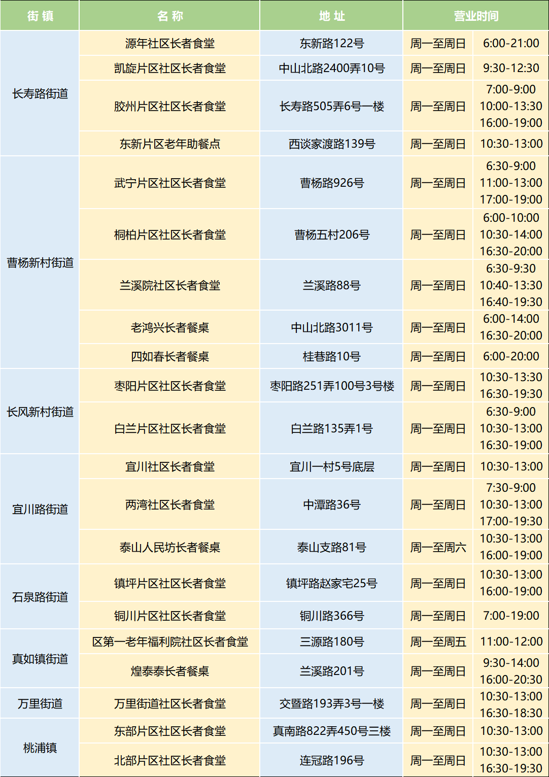 基础折扣:60周岁及以上居住在普陀区的老年人均可享受助餐折扣优惠。