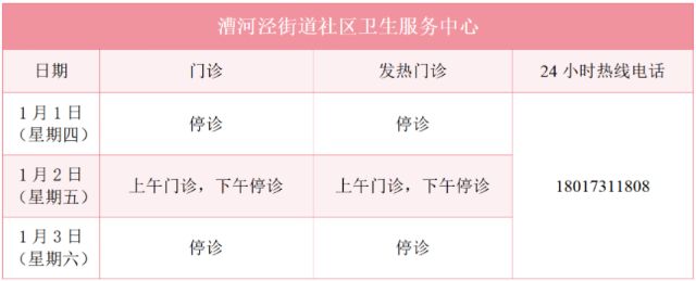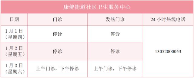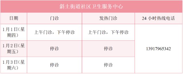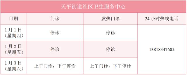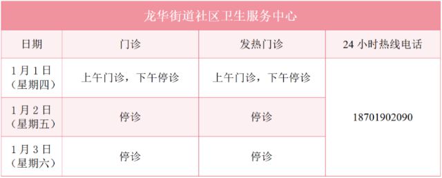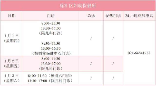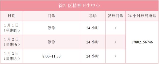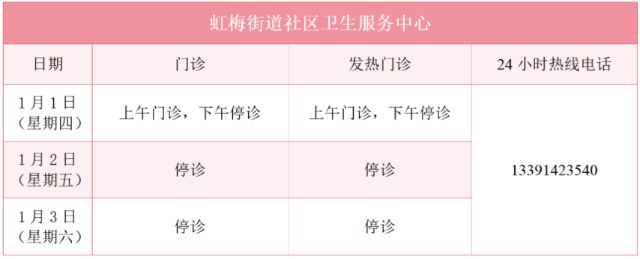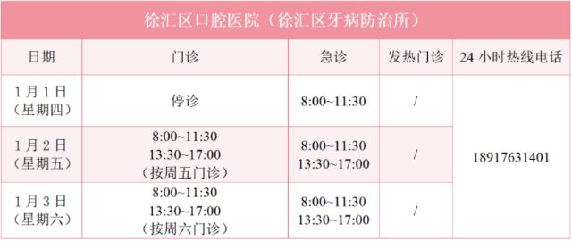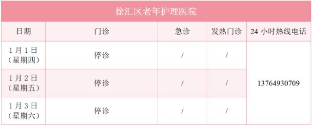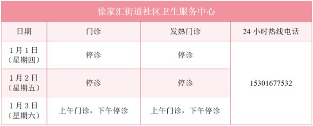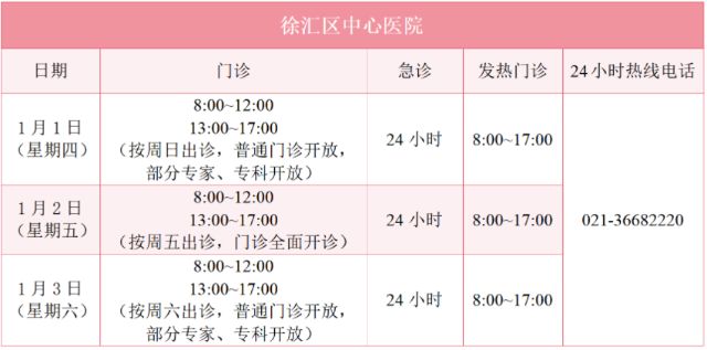 元旦假期里,徐汇区属医疗机构的门诊是怎么安排的?