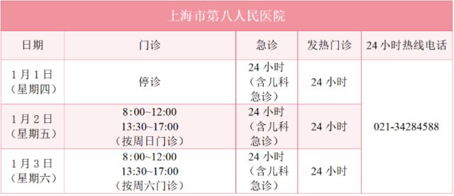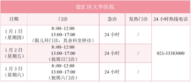 徐汇区属医疗机构元旦假期门诊安排一览