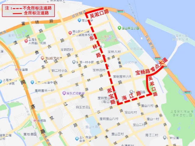 2025年12月31日18时至2026年1月1日1时,沿吴淞口路-东林路-淞宝路-海江路-吴淞口路-宝杨路-零点大道以及长江江堤,围合区域内的地面道路(不含上述道路,含吴淞口路、宝杨路、零点大道),禁止车辆通行。