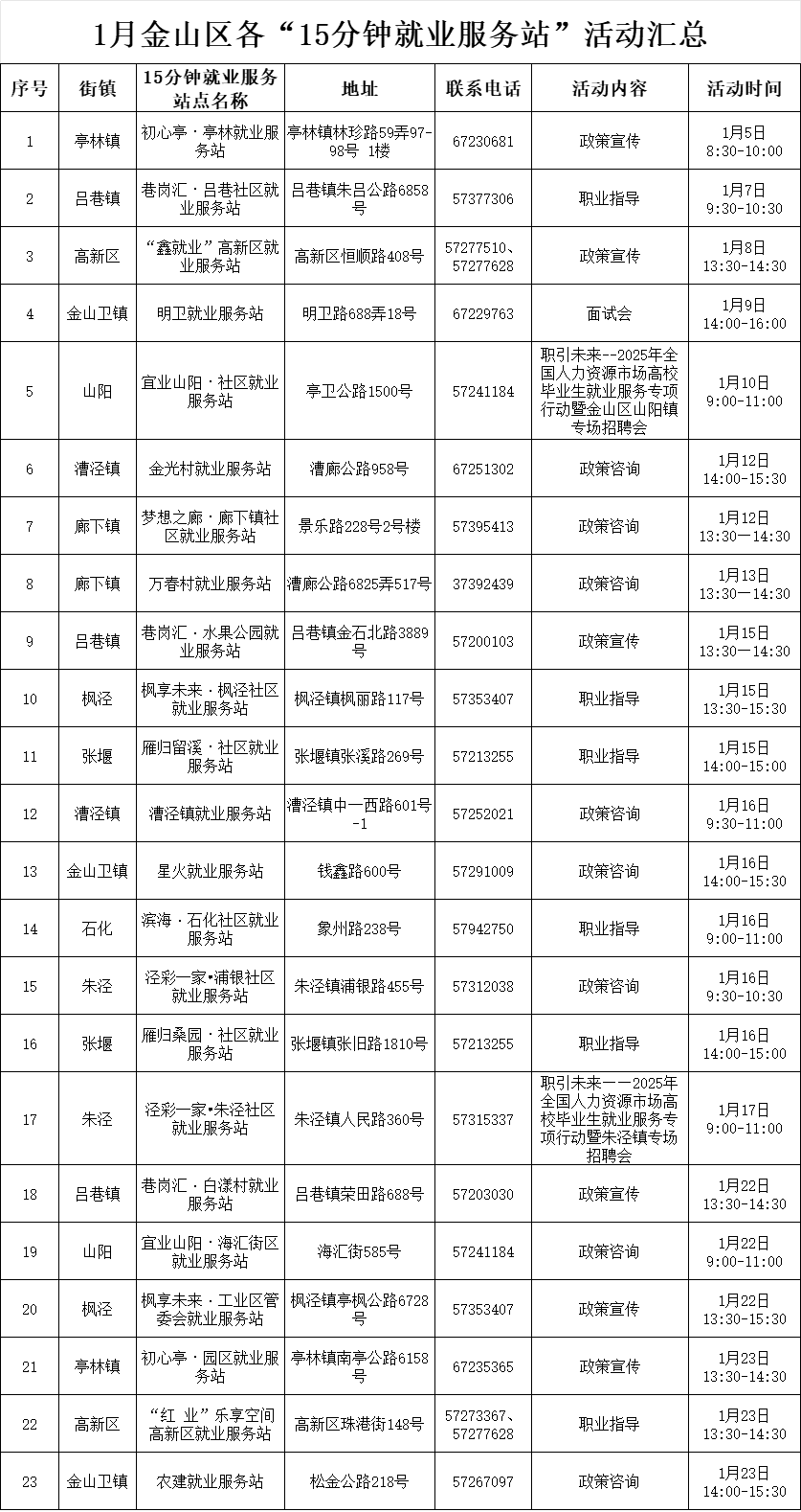 金山区“15分钟就业服务站”活动预告