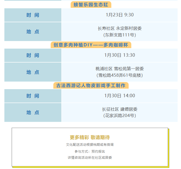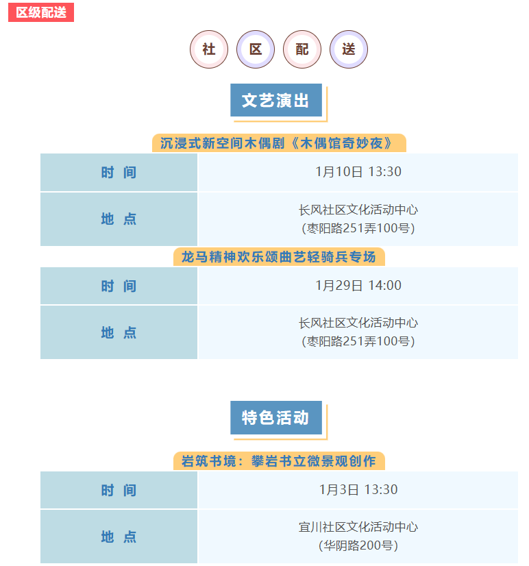 普陀区1月文化配送活动预告(区级配送、基层配送)来啦!