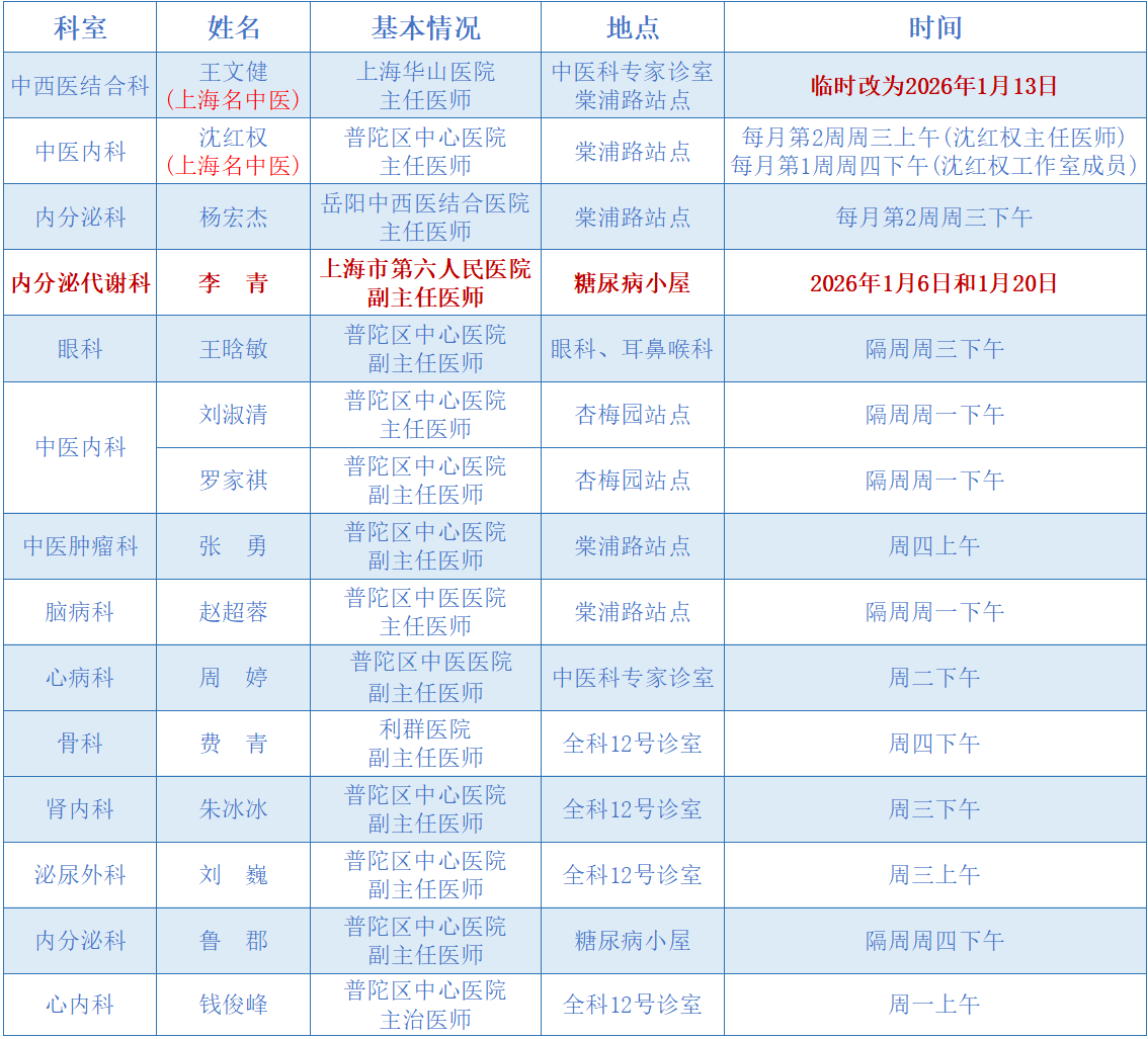 “家门口”就能看名医!普陀2026年1月专家门诊安排来啦 2026-01-07 来源:普陀区人民政府